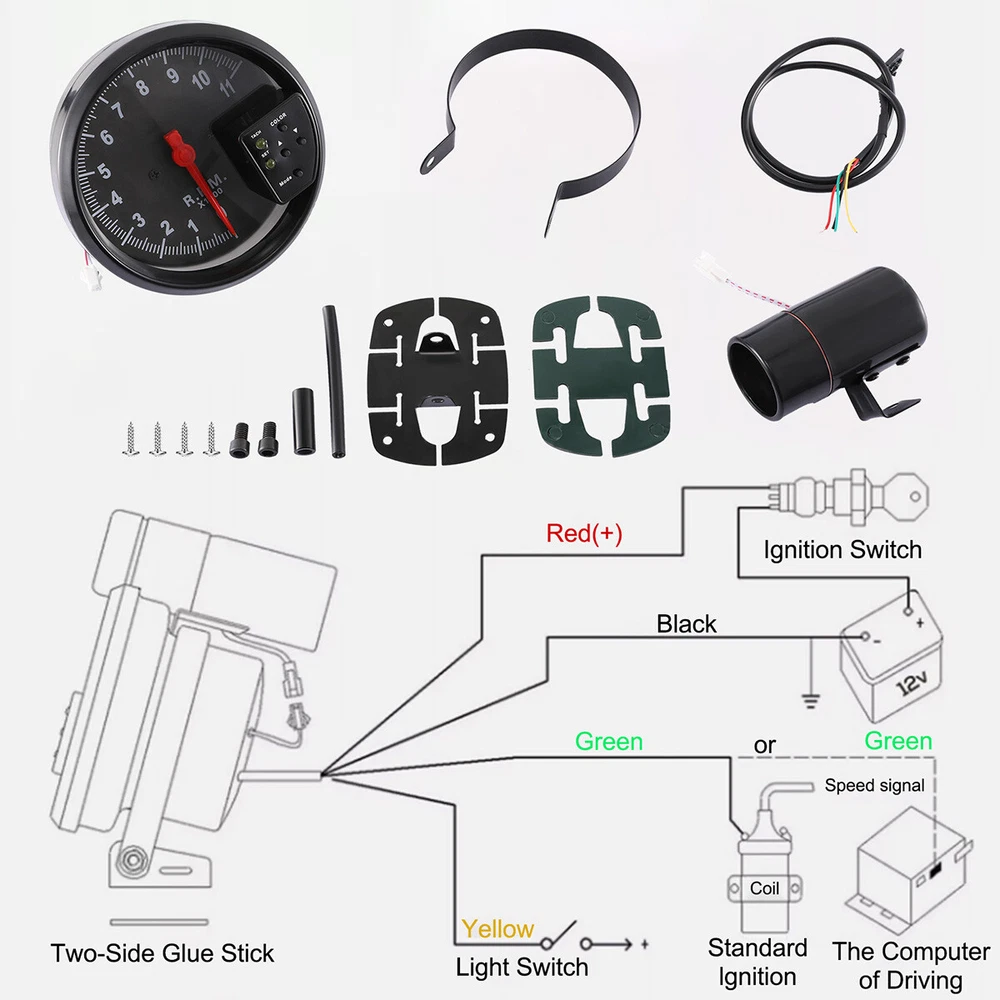 5" Tachometer 7-color Backlight with Shift Light LED Peak Warning 0-11000 RPM FEATURE 1.Aluminum Housing: The tachometer adopts aluminum housing, which is light in weight and has high strength to withstand certain external impacts and protect the internal precision parts. 2.High-Quality Smooth Movement: The tachometer is equipped with a high-quality smooth movement, which results in lower frictional resistance and less jitter during the rotation of the pointer, and higher accuracy of the indication. 3.High-Quality Copper: The contact points of the tachometer are made of high-quality copper, which is easier to conduct electricity and not easy to aging. 4.Seven-Color Backlight: The tachometer is equipped with a seven-color backlight, which can be selected in any color and can also change colors automatically. 5.Wide Applicability: Tachometers have a wide range of applications in the transportation field, and are suitable in most 12V car models. PRODUCT PARAMETER Background Light Color: Seven Colors Voltage: 12V Shell Material: Aluminum Size: 13cm/5.12in PRODUCTS INCLUDE 1x Tachometer 1x Adhesive Stickers 1x Hose 1x Alarm Light 1x Cord 4x Screws Payment Delivery details Terms of sales About us Contact us Payment Payments: Paypal, Google Pay, Visa, Master Card, Amerian Express, Discover. Delivery details All items are shipped from US warehouse located at NJ . We ship to your eBay or Paypal address. Please make sure your eBay or Paypal address is correct before you pay. Terms of sales Free return About us Pls contact our customer service firstly if have any problems , we will help to solve the issue, and could offer free return service for full refund or free replacement after confirming. You can buy from us with confidence Contact us If have any problems, please feel free to contact us.