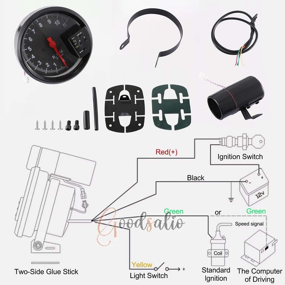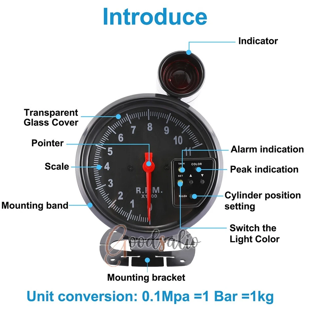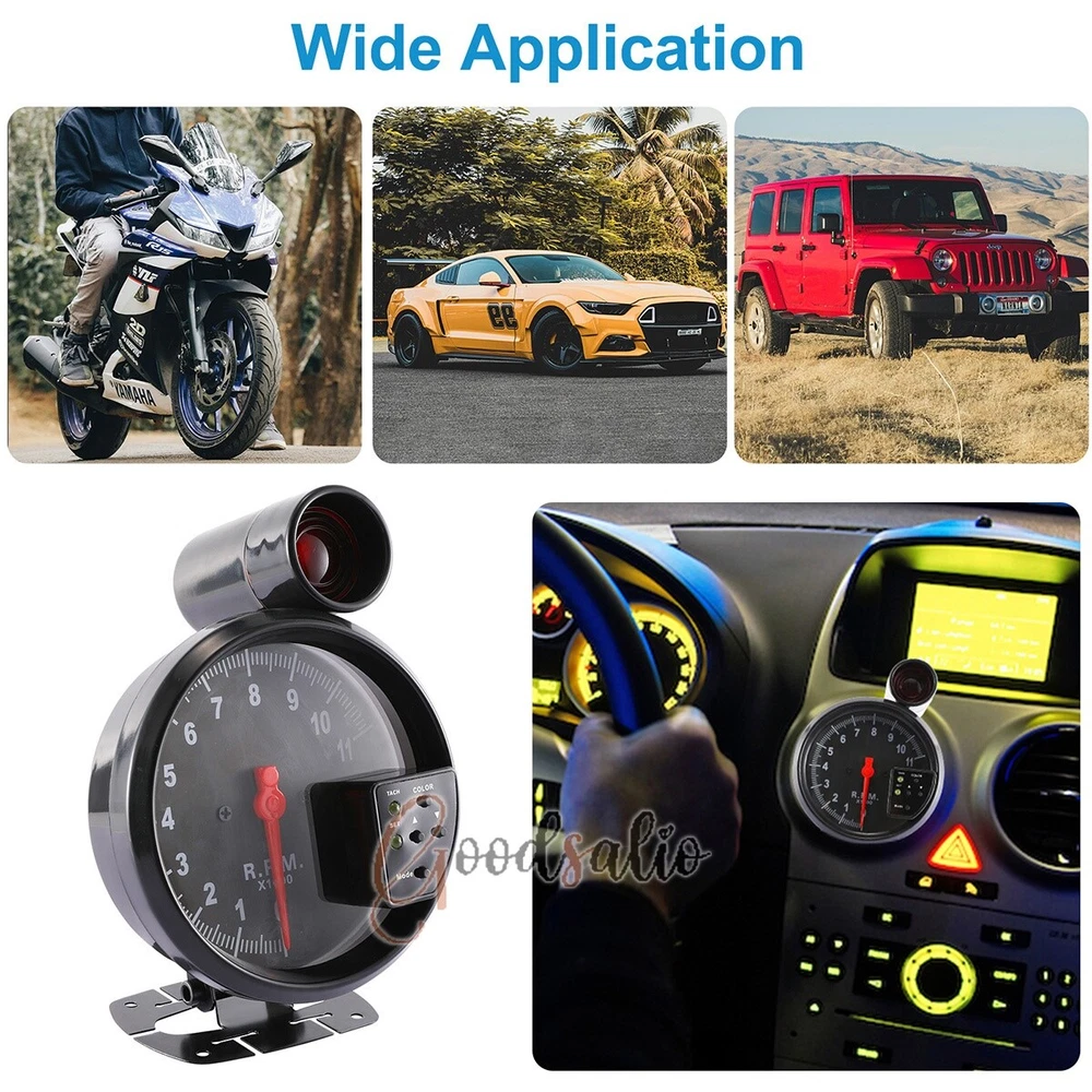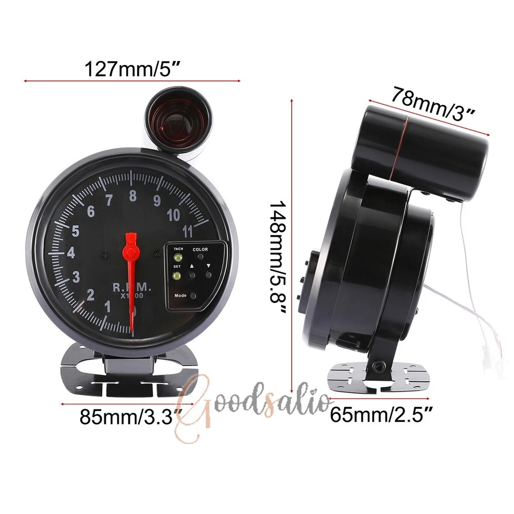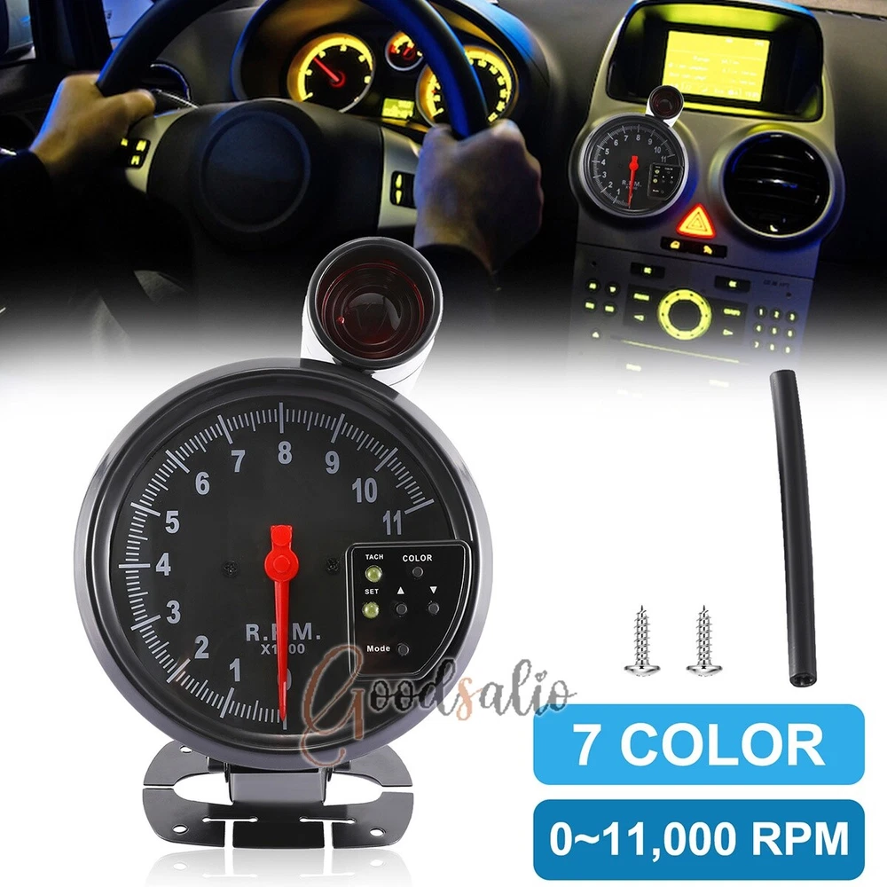 5" Tachometer Gauge 7 Color Backlit 0-11000 RPM Meter Shift Light Universal 12V ★SPECIAL TIPS: √ Ship within 24 hours Via USPS from NJ ,USA √ 100% New & Excellent Quality √ Professional Customer Service √ Strictly QC, Each set was fully tested before shipping √ Offer delivery with Tracking Number If not 100% satisfied with our products, no-questions asked, we offer 30-day free return & money back. Product Feature 1.Aluminum Housing: The tachometer adopts aluminum housing, which is light in weight and has high strength to withstand certain external impacts and protect the internal precision parts. 2.High-Quality Smooth Movement: The tachometer is equipped with a high-quality smooth movement, which results in lower frictional resistance and less jitter during the rotation of the pointer, and higher accuracy of the indication. 3.High-Quality Copper: The contact points of the tachometer are made of high-quality copper, which is easier to conduct electricity and not easy to aging. 4.Seven-Color Backlight: The tachometer is equipped with a seven-color backlight, which can be selected in any color and can also change colors automatically. 5.Wide Applicability: Tachometers have a wide range of applications in the transportation field, and are suitable in most 12V car models. Product Parameter Background Light Color: Seven Colors Voltage: 12V Shell Material: Aluminum Size: 13cm/5.12in Products Include 1x Tachometer 1x Adhesive Stickers 1x Hose 1x Alarm Light 1x Cord 4x Screws