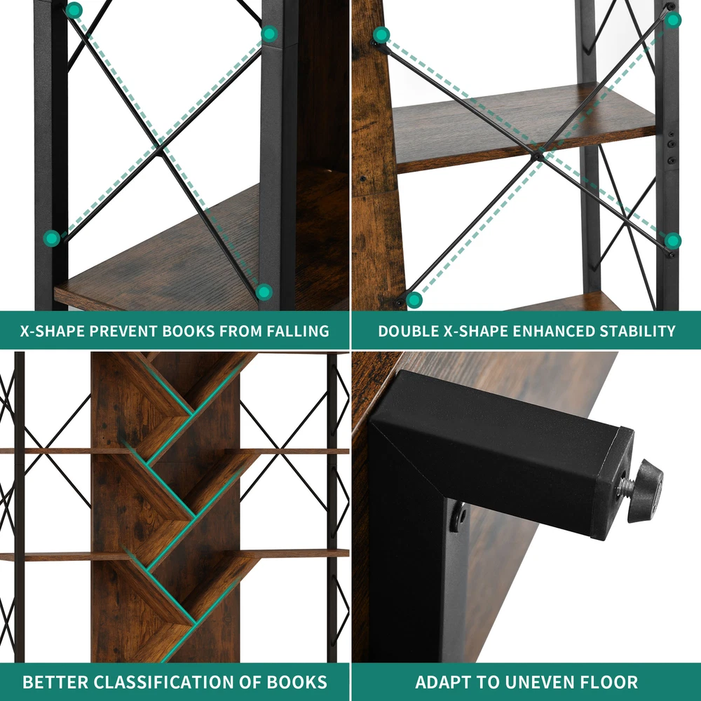 Featured types you may look for Gold Bookcase Brown Bookcase Gray Bookcase White Bookcase 5 Tier Industrial Large Bookshelf Bookcase Standing Tree Wide Display Shelves Item Description: Description: Material: Chipboard; Steel Frame Color: Rustic Brown Board & Black Frame Dimensions: 11.8"D x 55.1"W x 70.8"H Shape: Rectangular and Tree Feature: Tree Bookshelf Design: This large bookshelves combines 5 shelf bookcase and tree shaped bookshelf, providing you with more storage space. Tree design can make your book classification more convenient. Wide Bookshelf: The length of this 5-tier bookcase is 55 inches, which is 20-30 inches longer than a regular wood bookshelf, providing enough space for your books, magazines, potted plants, etc Enjoy Enhanced Stability: With two strengthened "X" bar and anti-tip device, our 70.8" tall bookshelf provides improved stability. No more tilting or swinging worries. Thoughtful design: The "X" side bars and 23.6 "W × 70.8 "H backboard on the industrial bookshelf prevent your items from falling and causing damage. It is easy to match well with your other furniture. Worry-Free Assembly: Clear instructions and complete accessories included make installation a stress-free experience. Package Include: 1 x Bookshelf 1 x Packet of Fittings 1 x Instruction Manual Notes: 1. Assemble according to the instruction manual. 2. After receiving the package, first confirm that all pieces are included as per the instruction manual. 3. Do not tighten screws too hard when assembling. Firmly tighten only after the entire structure has been constructed. More Display: Shipping ● The shipping rates listed are only for residential or commercial destinations in the continental 48 United States. All international sales will go through eBay Global Shipping Program.please ask us if there are any questions. ● We only ship the item to the address that is sent to us at the time of checkout. Please verify the correct shipping address in your PayPal account before making your payment. If we ship your item to an old or invalid address and you are not able to locate the item, we are not responsible for shipping a replacement. ● Currently, we do not ship to Hawaii, Alaska, Puerto Rico,APO/FPO/PO Boxes. ● We use USPS, UPS & FedEx as shipping method. ● Payments cleared before 12 PM PST, will be shipped on the same day. Payment ● We accept PayPal and all forms of credit card. ● We will only ship to the confirmed Paypal shipping address given with the payment. ● We do not offer local pick up service. Return ● 30 days Money Back Guarantee. ● If any package that needs to be returned, please contact our customer service first to receive a RMA form. ● All return items MUST be in brand new condition. About Us ● Specialized in aftermarket auto parts since 2012, we source and work directly with professional manufacturers to provide the highest quality parts at the most economical prices. ● We also has over 5 years of shipping experience with FedEx and USPS . Our Packing Quality is Guaranteed , Item Ship-ping is timely!