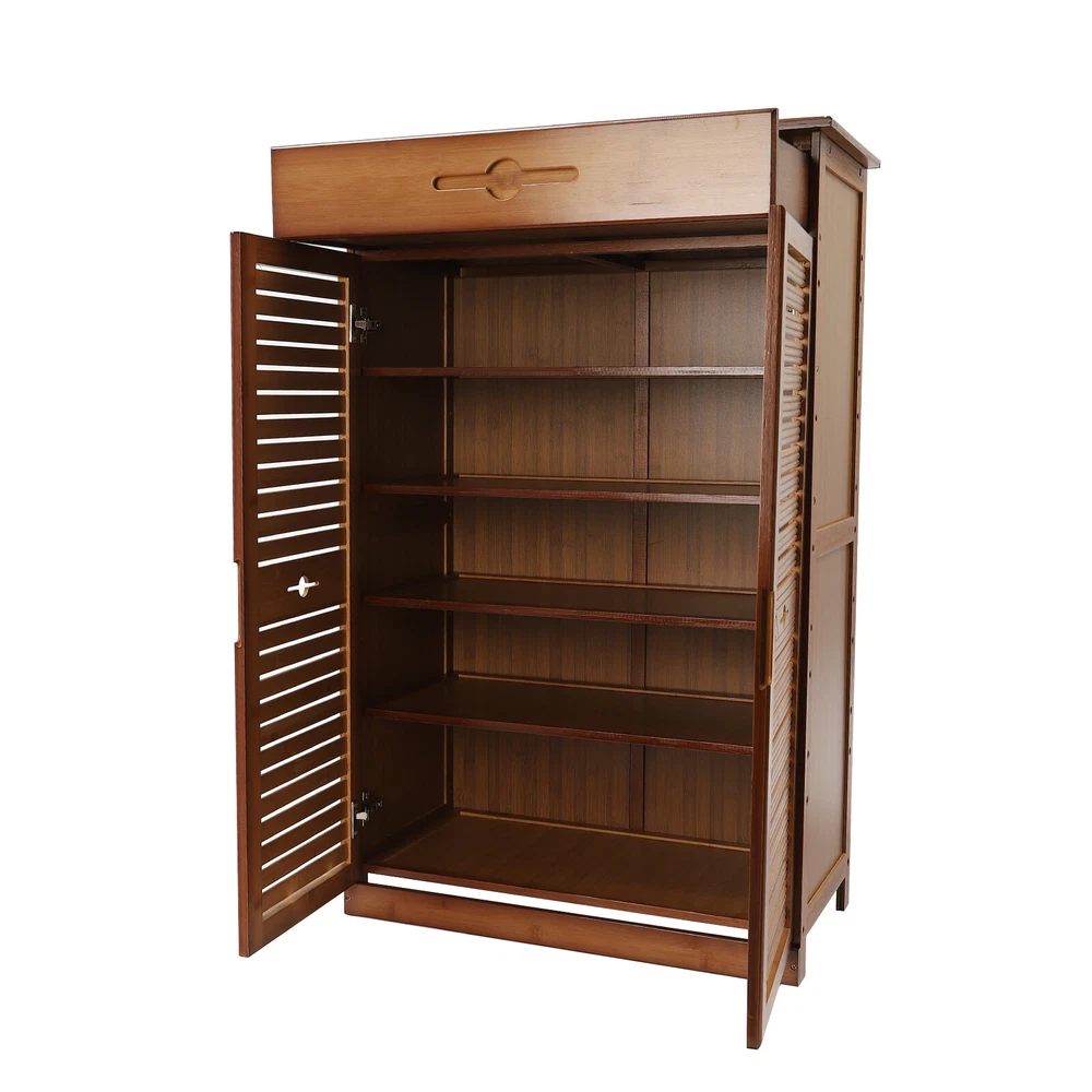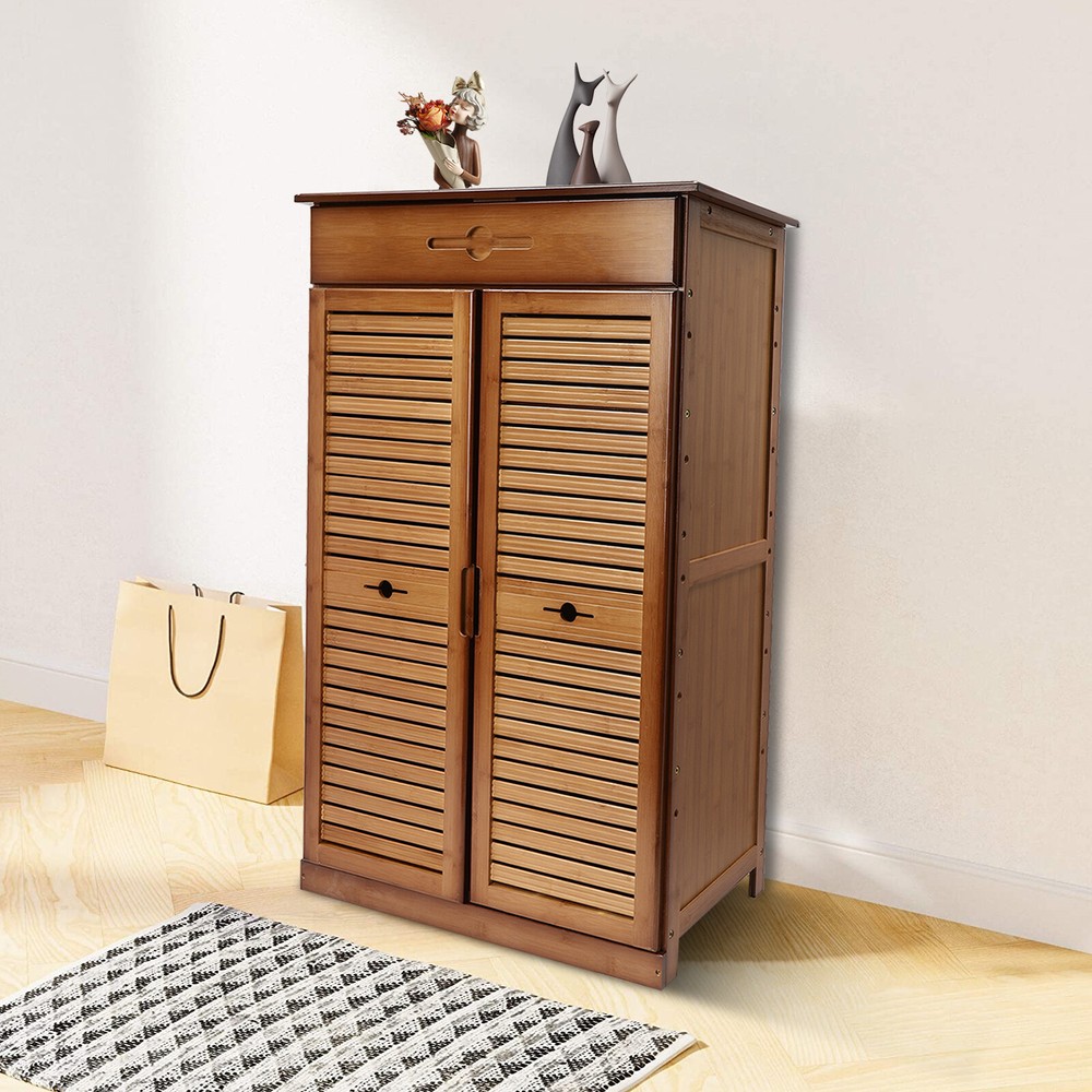 ????Welcome to my store???? Description In our daily life, a neat and organized space can make us feel relaxed and happy. The feeling of coming home starts from entering the door and changing shoes. Look at our shoe cabinet made of high-quality natural bamboo and MDF. With its large capacity and elegant appearance, this item makes you feel warm, giving you a sense of pleasure and comfort from the moment you walk in the door. Key Features Last and Durable: It is made of high-quality natural bamboo and MDF and processed by painting, which make this item sturdy and durable, so it can provide good performance for a long time. Large Capacity: Five tiers, one drawer, and wide top space allow you to store various types of shoes and other items in an orderly manner, placing it at the doorway to put away messy shoes and enjoying a neater environment. Good Load-capacity: The sturdy material and stable structure give the product excellent load-bearing capacity and stability, so you can use it with confidence without worrying about collapse. Elaborate Design : The double door design makes it easy for you to pick up and find shoes. In addition, the shutter design on the door ensures the gas circulation in the cabinet and makes the shoes dry, avoiding producing an unpleasant odor. Adjustable Tier Spacing: It has reserved excess holes, and you can adjust different tier spacing by changing the insertion hole positions during installation, so it can accommodate shoes of different heights. Dustproof and Waterproof : With a two-door and three-sided sealing design, it is more dustproof and waterproof than open ones, providing all-around protection for your shoes so that they are not easy to get dirty. Fancy Appearance: The beautiful brown, smooth lines and simple style make the whole product retro and solemn which can decorate rooms of different styles. Easy to Install: The complete accessories, pre-drilled holes, and installation diagram enable you to easily assemble the shoe cabinet step by step. Easy to Clean: The smooth surface and raised bottom allow you to easily remove dust and residues with a wet towel Details Solid Laminate: These laminates are both very stable and prevent dust from falling off, keeping shoes neat. Solid Hinges: Solid metal hinges allow you to open and close cabinet doors flexibly. Recessed Handles: The embedded handles on drawers and cabinet doors not only make it easy for you to open and close the product but also provide you with a more comfortable touch. Clear Texture: The clear texture on the surface can restore the most realistic touch and give you a better feeling of use. Application It can be placed in the bathroom, living room, kitchen, entrance, and bedroom to store toiletries, decorative items, spices, small household appliances, books, various shoes, bags, umbrellas, small potted plants, keys, scarves, photos, toys, umbrellas, etc. Specification Material: Natural Bamboo, MDF Color: Brown Style: Retro Process: Painting Shape: Rectangular Mounting Type: Floor Standing Assembly Required: Yes Shape: Rectangular Number of Pieces: 1 Number of Drawers: 1 Number of Tiers: 5 Number of Doors: 2 Product Size: 66*33.5*102cm/26*13.2*40.1in Package Included 1* Shoe Cabinet 1 Pair* Gloves 1* Allen Key 1* Installation Diagram All Accessories for Assembly Notes 1. We recommend using it indoors, trying to avoid drastic changes in humidity, and staying away from the air conditioning vents as much as possible. 2. Please do not collide, knock or rub with hard objects to avoid scratching or damaging the gloss of the product surface. 3. Bamboo products are made of natural materials, which will inevitably lead to different textures, knots, halos, gaps, and spots, but they will not affect beauty and use. 4. Please do not use corrosive detergent or hard objects for cleaning. It is recommended to use a soft cloth for wiping. 5. Bamboo products should not be exposed to the sun, or in a dark, and humid place for a long time to avoid cracking, deformation, and mildew. 6. Please note that the number of shoes that can be stored will vary depending on the size and height of the shoes. 7. Please allow the slight color difference caused by the shooting light and 1-3cm error due to manual measurement, and make sure you do not mind before ordering. Payment Delivery details Terms of sales About us Contact us Payment We accept ebay payment 。 Fees such as import duties, taxes are not included in the item price or shipping costs. These charges are the buyer's responsibility. Delivery details Shipping: 2-9 working days to: USA Terms of sales We maintain high standards of excellence and strive for hundred percent customer satisfaction. Feedback is very important to us. We hope that you contact us immediately before you give neutral or negative feedback, so that we can address your concerns. It is impossible to address issues if we do not know about them! About us Your satis faction is our ultimate goal. We work hard to earn your trust and future business. Our certified technicians have tested each item before shipping. The unit comes with 1 year limited warranty on all manufacturing defects. a) If you receive a defective item, you may return it or ask for a discount. Please contact us within 14 days after you receive the package. b) What you returned must be intact and in its original packaging as re? u. Customer is responsible for shipping costs of the returned item. c) We will cover the cost of shipping back t with the shipping rate indicated in the registration page. We will send you a new unit or refund the full payment you paid. Thank you. Contact us Business Hour Business Hour: Monday To Friday: 8:30 AM to 5:00 PM (Beijing China time) Due to time zones, our reply to your questions may not be immediately. But within above working time, we will reply your email within 24 hours. If it's non-workdays, please kindly be patient and wait till Monday. Please contact us with ebay message. Please feel free to cont