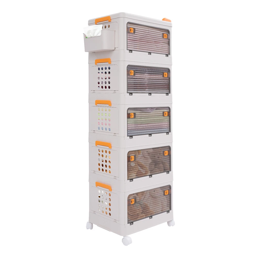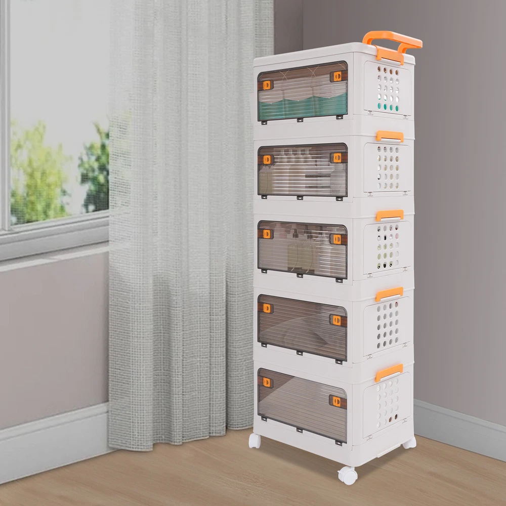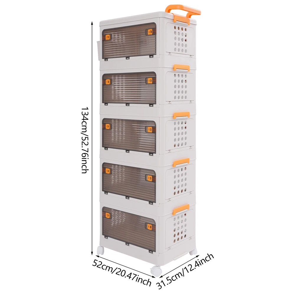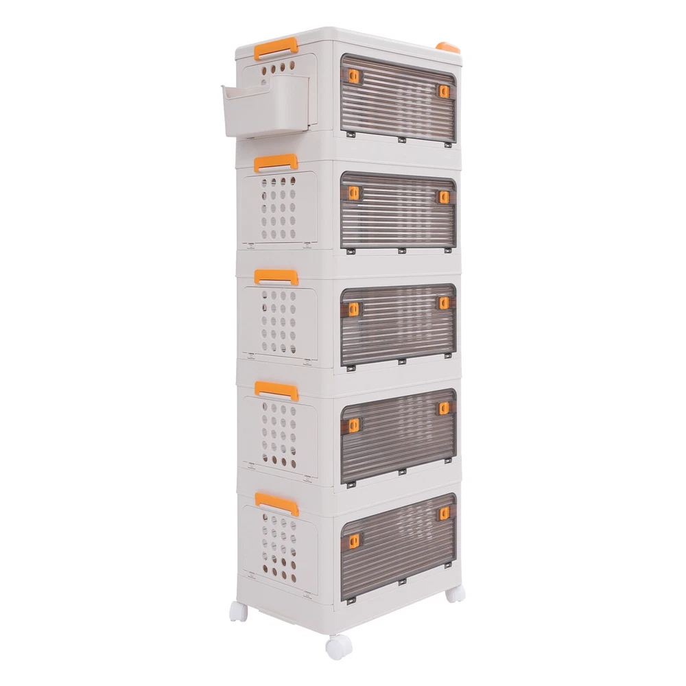 5 Tier Storage Bin Box Stackable Cabinet Organizer W/ Doors And Wheels NEW Description To say goodbye to the dirty room and create a clean and high-value room, we designed this 5-tier storage bin for you. This 5-tier storage can effectively improve space utilization. It can be used to store clothes, children's toys, pet supplies, kitchen condiments, bathroom supplies, etc., which is economical and affordable, so buy and try it! Key Features Selected Material : High-class PP makes this product hard, environmentally friendly, odorless, dustproof, waterproof, and not easy to deform so that it can be used for a long time. Ample Storage Capacity : The 5-tier design provides plenty of space to organize and store a variety of items, such as clothing or household essentials, to keep your home tidy. The side basket can also hold keys and other small items, and the top platform can hold mugs, table lamps, vases, and more. It also helps children develop good organizing and storage habits from a young age. Thoughtful Design: The semi-clear door allows you to view the contents without opening the door, and the ventilation holes on the side effectively prevent odors and keep the interior fresh and dry. Easy to Access: The four-side door opening design and removable top allow you to access items from different angles. Strong Load-Bearing Capacity: The rectangular structure and sturdy material allow each tier to hold about 88.18 lbs, so you can use it with confidence. Space Saving : Its multi-tier design uses vertical space, making it easy to create storage space in just a small corner. Moreover, it can be folded into a smaller size when not in use, allowing for efficient storage and saving valuable space in your home or garage. Easy to Move&Fix: The top handle and 4 universal wheels (two with brakes) make this product easy to push and pull, move, and fix, which is very energy-saving. Simple Installation : Simple construction and complete accessories allow you to assemble it in a short time, saving time and effort. Nice Gift : Thanks to its large capacity and beautiful appearance, you can give this product as a housewarming gift or holiday gift to your family, colleagues, or friends so that they can enjoy a more convenient life. Simple Maintenance : Thanks to its smooth surface and simple construction, you can easily clean it with a soft cloth (not included). Details Smooth Edges : The smooth and burr-free edges not only take better care of your hands and clothes but also improve the aesthetics of the product. Raised Guardrail: The raised top design prevents items from falling. Buckle Design : The side buckle design ensures a secure connection between tiers, making it hard to detach. Application This product is suitable for a variety of environments such as bedrooms, study rooms, toy rooms, and offices. It's ideal for organizing clothing, toys, books, craft supplies, office supplies, snacks, and other items. Specifications Material: PP Color: White Style: Modern Shape: Rectangle Mounting Type: Floor Standing Assembly Required: Yes Each Tier Load Capacity: About 40kg/88.18lbs Number of Tiers: 5 Number of Universal Wheels: 4(Two With Brakes) Product Size: 52*31.5*134cm/20.47*12.4*52.76in Package Size: 46*32*45cm/18.11*12.6*17.72in Gross Weight: 7.5kg/16.53lbs Net Weight: 6.7kg/14.77lbs Package Included 1* 5-tier Storage Bin 1* Small Storage Basket 4* Universal Wheels Notes Please carefully check the dimensions before purchasing. Please use this product within the load-bearing range. Please note that this product does not contain clothes, toys, snacks, and other items. Please allow the slight color difference caused by the shooting light and 1-3 cm error due to manual measurement, and make sure you do not mind before ordering. Payment Delivery details Terms of sales About us Contact us Payment We accept ebay payment 。 Fees such as import duties, taxes are not included in the item price or shipping costs. These charges are the buyer's responsibility. Delivery details Shipping: 2-9 working days to: USA Terms of sales We maintain high standards of excellence and strive for hundred percent customer satisfaction. Feedback is very important to us. We hope that you contact us immediately before you give neutral or negative feedback, so that we can address your concerns. It is impossible to address issues if we do not know about them! About us Your satis faction is our ultimate goal. We work hard to earn your trust and future business. Our certified technicians have tested each item before shipping. The unit comes with 1 year limited warranty on all manufacturing defects. a) If you receive a defective item, you may return it or ask for a discount. Please contact us within 14 days after you receive the package. b) What you returned must be intact and in its original packaging as re? u. Customer is responsible for shipping costs of the returned item. c) We will cover the cost of shipping back t with the shipping rate indicated in the registration page. We will send you a new unit or refund the full payment you paid. Thank you. Contact us Business Hour Business Hour: Monday To Friday: 8:30 AM to 5:00 PM (Beijing China time) Due to time zones, our reply to your questions may not be immediately. But within above working time, we will reply your email within 24 hours. If it's non-workdays, please kindly be patient and wait till Monday. Please contact us with ebay message. Please feel free to contact us if you have any questions. Monday To Friday: 8:30 AM to 5:00 PM (Beijing China time) Due to time zones, our reply to your questions may not be immediately. But within above working time, we will reply your email within 24 hours. If it's non-workdays, please kindly be patient and wait till Monday. Please contact us with ebay message. Please feel free to contact us if you have any questions. Feature3 Stable characteristic,high reliability Feature! Stable performance, durable Brand Unbranded Type Storage Basket Material PP