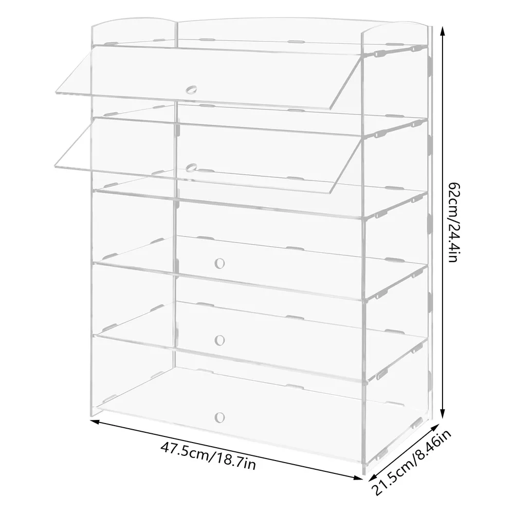 5 Tiers Acrylic Display Case Shelf Dustproof Showcase Holder for Retail Display
