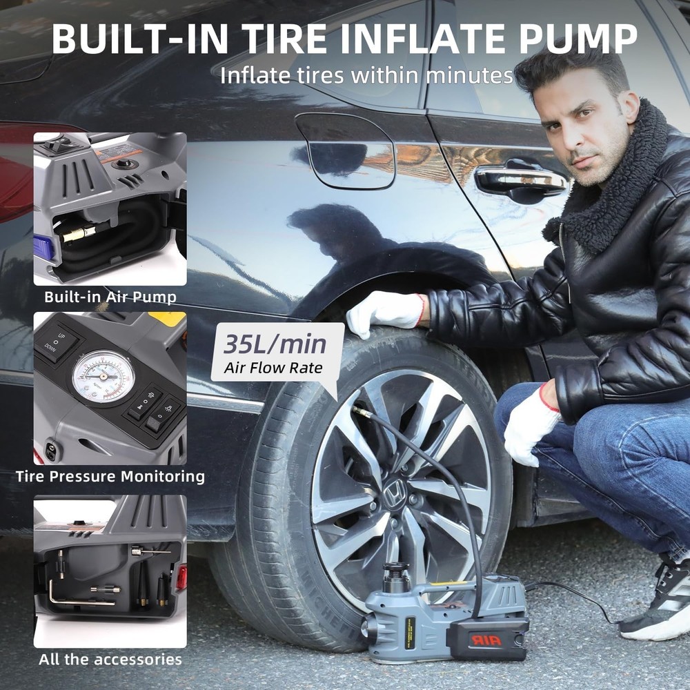 5 Ton Electric Car Jack Kit with Hydraulic Tire Inflator & Impact Wrench for SUV MPV Truck