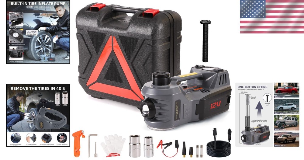 Electric Car Jack Kit 5 Ton Hydraulic Floor Jack Impact Wrench Tire Inflator Emergency ‹ › ‹ › ‹ › ‹ › ‹ › ‹ › ‹ › ‹ › ‹ › ‹ › Electric Car Jack Kit 5 Ton Hydraulic Floor Jack with Impact Wrench and Tire Inflator Key Features: High Performance: The floor jack boasts an impressive lifting capacity of up to 5 tons, with a versatile lifting height range from 5.9 inches to 20.8 inches, making it an ideal replacement for traditional tire-changing tools. One-Touch Operation: Save time and effort with an instant control system that allows you to lift your vehicle in just 2 minutes—an immense boost in efficiency compared to manual jacks. Adaptation to Harsh Environments: Designed to perform reliably within a temperature range of 5°F to 122°F, this jack is equipped to handle extreme conditions, whether you’re at high altitude, by the coast, or in freezing weather. Emergency Ready: This kit includes an impact wrench and tire inflator, ensuring you have everything you need for quick and efficient roadside assistance. Customer Satisfaction: We prioritize your peace of mind with an after-sales guarantee. If you are not fully satisfied, contact us online, and our dedicated team will respond within 24 hours. Enjoy hassle-free replacements within 90 days of purchase. Why Choose Our Electric Car Jack Kit? Are you looking for an efficient and reliable solution for your vehicle lifting needs? The Electric Car Jack Kit offers the perfect blend of power and convenience. Gone are the days of struggling with cumbersome hand-cranked jacks; now you can change your tires effortlessly and swiftly with our cutting-edge electric jack. Its ability to function smoothly in a range of harsh environments ensures you’re always prepared, no matter where you are. Elevate your roadside assistance experience—choose our Electric Car Jack Kit today and enjoy peace of mind wherever your travels take you! Shipping Free & Fast Shipping - We offer free shipping to most of the USA with a normal delivery time of 3-7 days. However, due to the current situation, additional delivery time (up to 3 weeks) may be required for some items. Alternative Carriers - We may use alternative carriers (e.g. USPS, FedEx, UPS, etc.) to ensure your package arrives safely and on time. Due to the use of multiple carriers, we are unable to provide a tracking number automatically. Handling Time - Orders are processed and shipped within 1-2 business days of receiving cleared payment. Shipping Restrictions - Shipping to Alaska, Hawaii, Puerto Rico, Guam, and other US territories may incur shipping charges or delivery restrictions. Please contact us before ordering, or your order can be refunded/cancelled. State Restrictions - There may be restrictions based on your state of purchase. For example, certain items may not be shipped to California due to state regulations. Contact for Tracking Updates - If you require tracking updates or have any concerns about the delivery of your order, please feel free to contact us, and we will be happy to assist you. Return 30-Day Hassle-Free Returns - We want you to be completely satisfied with your purchase. If you are not, you can return the item within 30 days of receiving it for a full refund or exchange. Easy Return Process - To start a return, simply contact us and we will provide you with a prepaid return shipping label and detailed instructions. Restocking Fee - There are no restocking fees for returns. However, the buyer is responsible for return shipping costs if the return is not due to a seller's error. Refund Processing Time - Refunds will be processed within 5 business days of receiving the returned item in its condition. Payment We accept all major credit cards, PayPal, and Apple Pay for your convenience. Your payment information is secure and encrypted to ensure a safe and seamless transaction. Please complete your payment within 3 days of purchase to avoid any delays in shipping. Feedback Your feedback is extremely important to us. We strive to provide the best products and customer service possible. If you are satisfied with your purchase, please take a moment to leave us a positive review. If you have any concerns or issues with your order, please contact us before leaving negative feedback. We are committed to resolving any problems and ensuring your satisfaction. Contact Us If you have any questions or concerns, please feel free to out to our customer support team. You can contact us through the eBay messaging system. We are available Monday to Friday, 9:00 am to 5:00 pm EST, and we will do our best to respond to your inquiry within 24 hours. Buy it now and enjoy a pleasant shopping experience! Manufacturer Part Number: Electric Car Jack Kit Unit Quantity: 11023lbs Type: Floor Jack Number of Pieces: 1 Drive: Electrical Material: Steel Capacity per Stand: 10000lbs. Minimum Height: 5.9 Inches