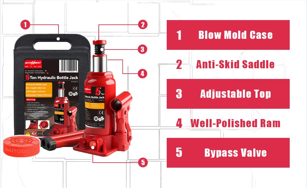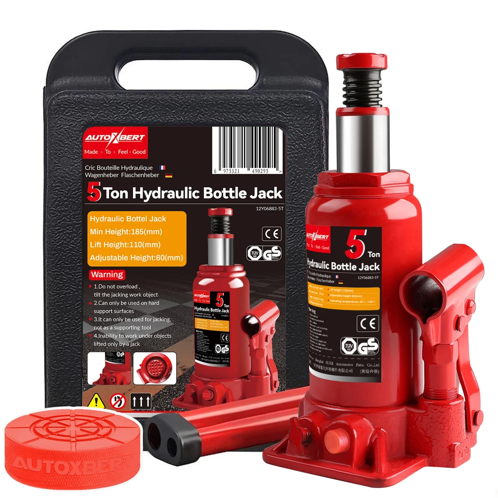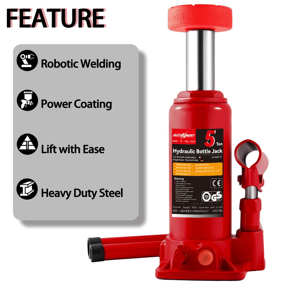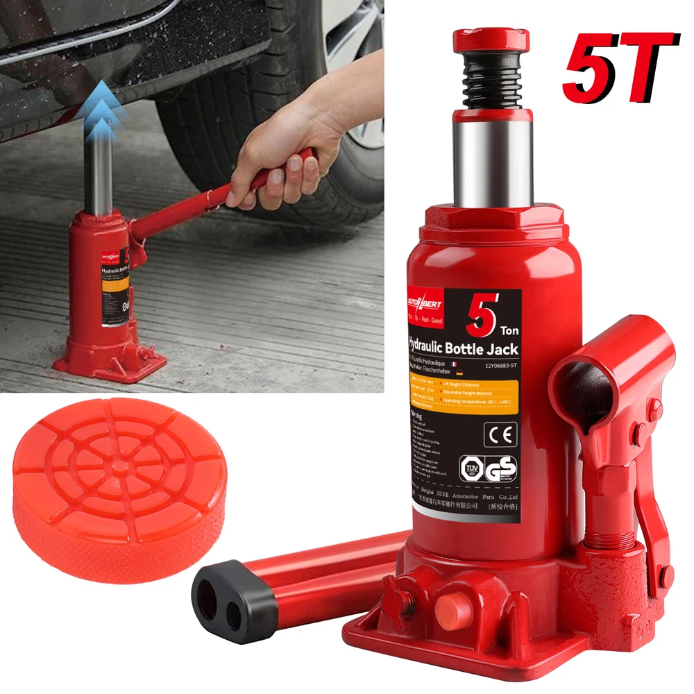 5 Ton Hydraulic Rubber Bottle Jack Stand Jack Pad Heavy Duty Truck RV Car Repair