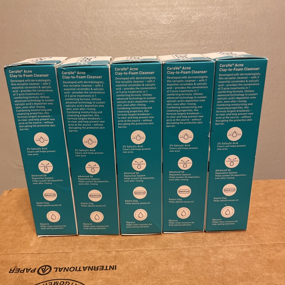 5 boxes- CeraVe Acne Clay-to-Foam Cleanser for Acne-Prone Skin - BB: 04/27 -CeraVe brand - 5 pack - 4 Fl. oz. - new and sealed - Acne Clay to Foam Cleanser - best offers are welcome just be mindful. You are getting free shipping