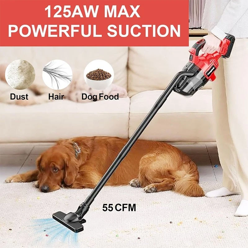 About this item: Unleash Unmatched Suction Power: This cordless handheld vacuum cleaner is equipped with a 500W high-power and efficient motor with a turbine blade design that spins at 18,000 rpm. With an impressive 46 CFM (cubic feet per minute) air flow, this vacuum cleaner provides industry-leading suction power performance, ensuring that no fine dust can escape its cleaning range. Compatible With Milwaukee 18V Batteries: The cordless stick vacuum compatible with Milwaukee 18V battery, suitable for 48-11-1820 48-11-1822 48-11-1840 48-11-1841 48-11-1828 48-11-1850 48-11-1852 48-11-1860 48-11-1862 48-11-1880 and more.We focus on reliable tools, provide Milwaukee power access solutions, stay away from inferior and dangerous batteries, and if you already own Milwaukee batteries and chargers, you will avoid unnecessary expenses. HEPA2.0 filter container: Portable vacuum cleaner has a dual filtration system. The removable washable HEPA can effectively capture particulate matter, including pet dander, ensuring cleaner and healthier air in your home. It is paired with a 600ml removable garbage container to keep your Daily cleaning made easy. Your reliable cleaning ally: The vacuum cleaner features a 5-in-1 design and comes with four different nozzles and brushes, this vacuum cleaner can meet all your cleaning needs, whether it's carpets, hard floors, furniture or tight corners. Convenient to use: With a lightweight body and compact design, this handheld vacuum with cordless design for car is easy to carry around. Contains silicone grips and LED lighting to provide a comfortable and firm grip to complete the cleaning of details in dark corners, suitable for cleaning vehicles, desks, carpets and other occasions. What will you get?: 1 x vacuum cleaner, 1 x floor nozzle, 1 x crevice nozzle, 1 x Long strip brush, 1 x Round head brush, 2 x Extension tube, 2 x HEPA, 1 x User manual, We offer a 12-month replacement warranty for any quality issues. Our goal is to provide reliable tools that exceed your expectations.