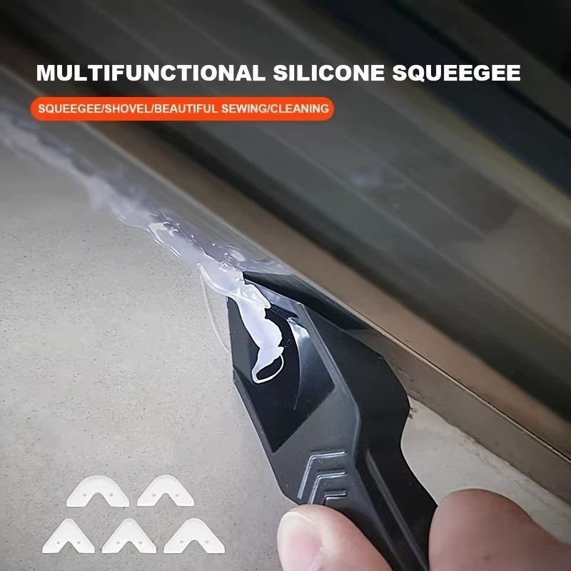 Description About5 In 1 Caulk Remover and Smoother It does not scratch the surface on which the silicon is being Now you can prevent any loose edges of silicone that trap moisture; It no need to dampen the surface,No need for masking tape; The spatula is finished with corners with different angles, allowing you to choose the appropriate tip for the job; Durable and no thorns,wearproof and solvent-resistance; The flat stainless steel won't scratch hard surfaces 5 IN 1 Caulk Tool; 5 in 1 Caulk Remover and Smoother; Use with the tool,saves half time to remove the dried caulk; NO Wsate of sealant,excess sealant could be saved on silicone pad; With 5 Sizes Radius Exchangeable Pads :3R,6R,10R,13R,17R for creating 5 shapes round angle; Ideal for corners,showers,windows.The smart dimension is applicable for interior and exterior caulking. Product Description : Condition: 5 In 1 Silicone Sealant Remover; Name: adhesive residue scraper; Material: Stainless Steel/Plasti
