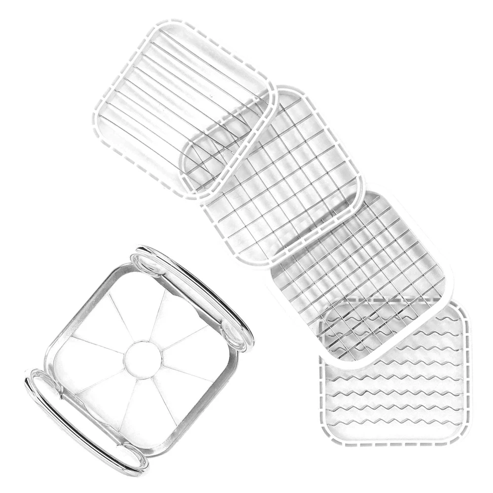 Item Type: Replaceable Stainless Steel Cutter Cutter Size: Approx. 10x10cm / 3.9x3.9in Material: Stainless Steel + PS Color: As Pictures Shown Weight: Approx. 436g/15.4oz Cutter: Cutter, Small Grid Potato Cutter, Large Grid Potato Cutter, Potato Cutter, Wavy Potato Cutter