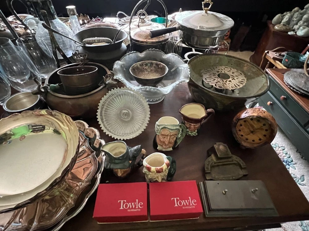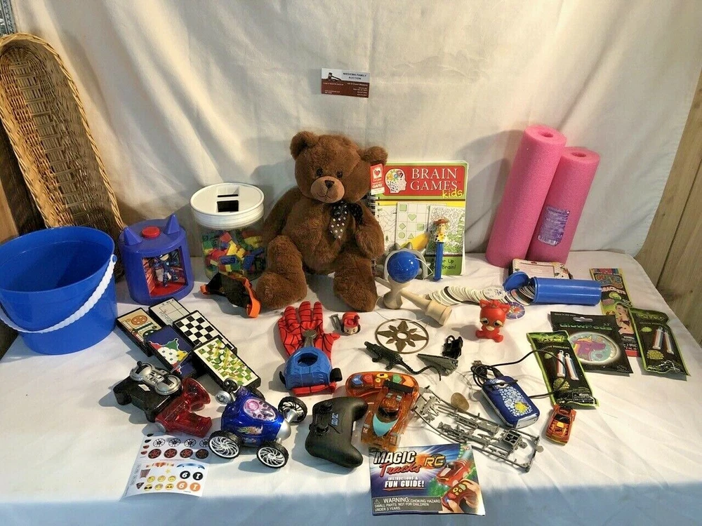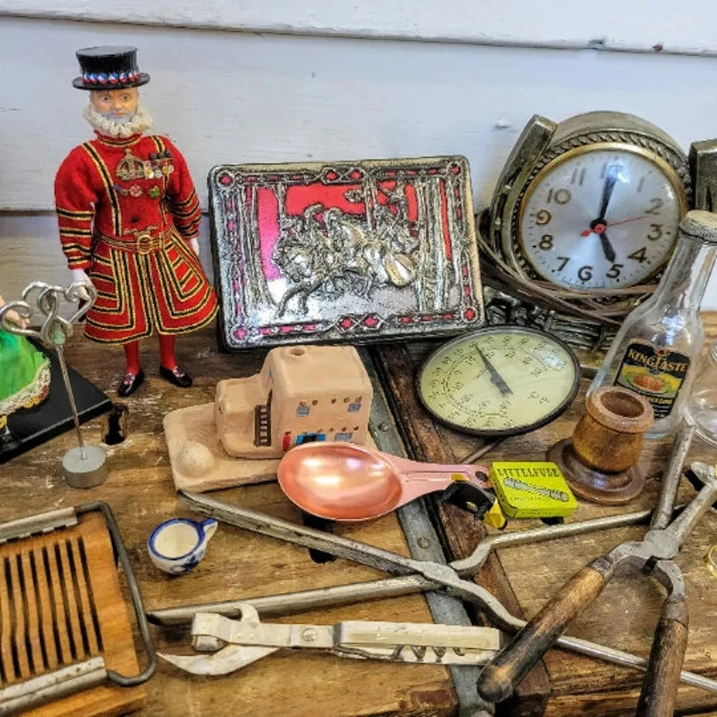 Estate Services Warehouse Clearance - Auction house Clearance- "Junk Drawer Box lots" - 5 pound lot of random items and collectibles , new and used items may be included together, varied from our inventory - see pictures as an example illustration guide. Sold as described - 5 lb lot Junk Drawer-old & new-Our Auction House in a BIG BOX, bulk wholesale. Clean, intact, ready to use or resell Mixed assorted small to large items. See description for categories. Photo shown is a sample of our auction house inventory that we draw from. Here are our categories of what we may include in the 5 pound purchased shipment Wholesale priced to sell, value of items included will exceed their retail value and your purchase price. Great Resellers restocking items - resale, gifts, flea market inventory, or use them Shipped via USPS or ups in an appropriately sized box. You are Purchasing to Receive 5 pounds of item selected from the following Jewelry pieces Vintage smalls Coins Watches Stamp sets Die-cast cars Small tools CD/DVD item Fashion clothing and accessories Mini toys,Pez Tools (old and new) Vintage postcards Varied trading cards New unopened personal care items Comic books Souvenirs Advertising pins Video games Electronics Old Records,8 track & Cassettes Historical items Old photos Varied books Housewares silver plate Vintage Art Glassware,China & pottery Marbles Household items Dolls & plush Eyeglasses Games & puzzles NOTE: Items are from our brick and mortar auction house inventory ! New, old and pre-owned items from our retail inventory are sold in "AS SHOWN, AS IS condition." That is the condition that we receive them in. Expect wear spots the need for TLC on older items, We have many categories that we fulfill from. Photo of item warehouse items being shipped serve as sample of what you may receive. Photo(s) provided are sampling only and are part of the description. Additionally items may include multiples from above and: Video games, paper ephemeral, sports cards, plush toy, gaming items , playing cards, glassware, silverware, mugs, pet items, paperback books, tools, cleaning aids, collector items, Disney items, puzzles, Pez dispensers, sports gear, work gear, art supplies, etc. SEND US A MESSAGE TO INCLUDE THE ITEMS YOU COLLECT- so we can help to customize your box lot Note: Retail value of items included in the 5 pound lot will equal and/or exceed the purchase price. Items not included are - Used clothing, shoes, banned USPS shipping items like batteries, All items are shipped USPS and boxed according to minimum weight of 5 pounds !!! Due to the nature of the close out , cost of shipping, and varied items:please no returns