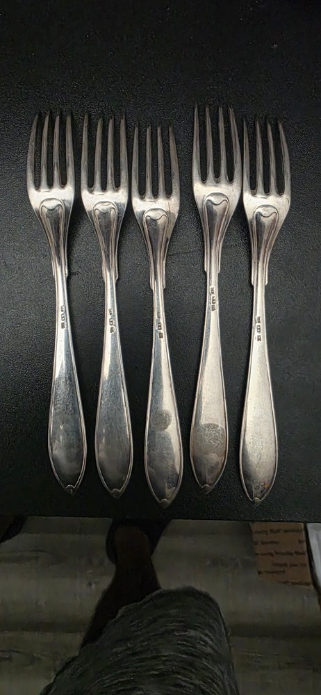 The product is a lot of 5 silver forks made of silverplate. These forks are likely to be elegant and stylish, perfect for serving meals at the table. The silver finish adds a touch of sophistication to any dining experience, making them a desirable addition to any collection of silverware.