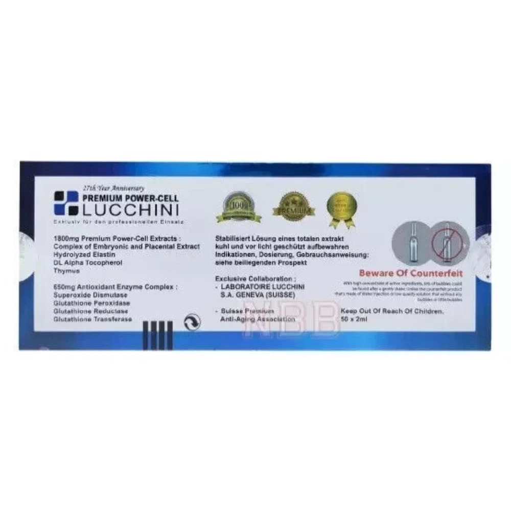 50 Ampoules 2ml~Lucchini Premium Anti Aging Restore Elasticity & Hydrates Skin Product Description : This is the most efficient skin whitening technique which helps to boost the glutathione inside our body and improve overall health while giving you skin whitening results on your skin. Benefits of Lucchini premium power cell injection : Stimulates the growth of new cells Enhances skin elasticity Protects against free radicals and skin damage Boosts collagen levels in cells Regulates and inhibits melanin production Slows down the skin's aging process Achieves brighter and more even skin tone Provides deep skin hydration Enhances skin quality and tone Creates a youthful texture Treats acne and reduces dark spots Alleviates skin dryness Shields the skin from harmful sun rays Key Ingredients: Physiology Activation Substance: Energizes blood cells and promotes healthy blood flow. Nucleic Acid: Boosts collagen production, giving your skin a radiant glow. Amino Acids: Repairs damaged skin cells, heals wounds, and soothes skin irritation and redness. Growth Factor: Smoothens and tightens your skin, reducing roughness and wrinkles. Hydrolyzed Collagen: Maintains skin hydration and erases wrinkles and fine lines. Concentrated Bio-Protein: Enhances overall skin health and moisture. Enzyme and Hormone Healthy Human Placenta: Reduces wrinkles, fine lines, and premature aging signs. Instructions for Use: Initial Dose: 2-3 injections in the vein (IV) or intramuscular (IM) every 5 days for up to a month. Maintenance Dose: 1 injection in the vein (IV) or intramuscular (IM) every 10 days. Disclaimer: This product is not suitable for individuals with skin problems. Results may vary from person to person. Consult your physician before use. Not Suitable For: Breastfeeding women. Individuals with allergies to vitamins. Pregnant women. Patients with cardiovascular problems. Disclaimer: Individual results may vary based on metabolism and lifestyle. ========================================================================================================================= Shipping : - Delivery time: We use expedited shipping by DHL Express, FedEx or other curriers. It takes approximately 5-7 days. Sometimes some country 7-9 days. It depend on location and customs destination. - We will ship your item within 4-5 working days - The item will be ship with tracking number. Your item will be packing properly to avoid any damage If you have any problem with the order, do contact us first via ebay message. We will solve the problem as soon as possible. Custom : - Not responsible with your country's customs, Please check with your country's customs before you buy. - All the custom fees and taxes will be on the buyer's responsibility. - Also allow some time for your country's customs clearance time, because the delays usually come from Customs. - Seller is not responsible for item lost, but seller always keep the proof of delivery. Feedback : Positive feedback is greatly appreciated and we will do the same in return. If anything unusual happens, please feel free to contact us, we will do our best to solve it before leaving feedback.
