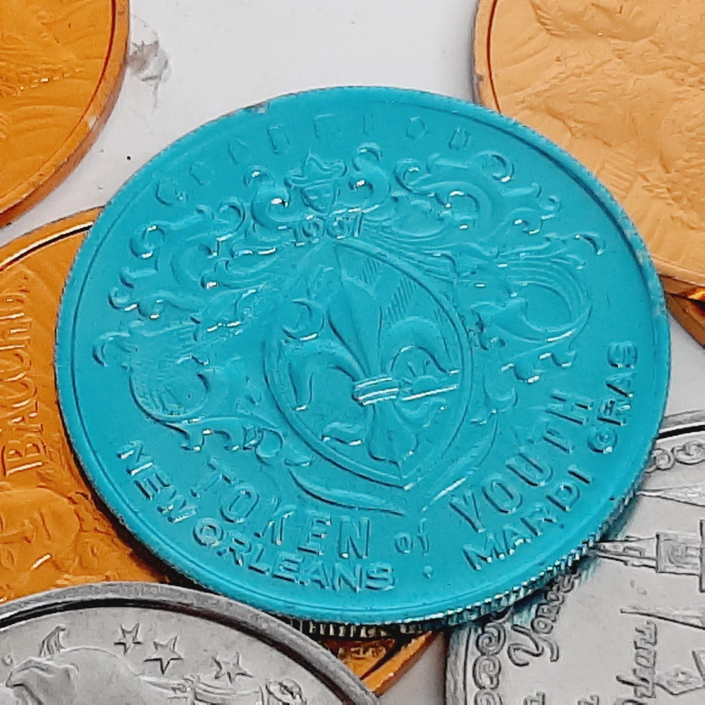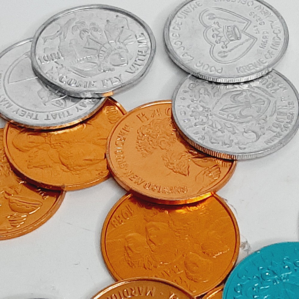 Lot of 50 Assorted Mardi Gras Aluminum Doubloons Gold, Silver Krew Coins Good condition with minimal signs of use or wear