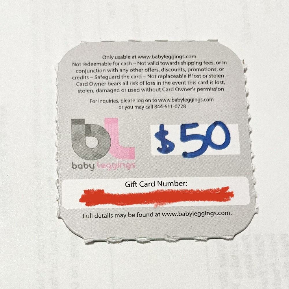 $50 baby leggings Gift Card. After purchase, I will give you the code.