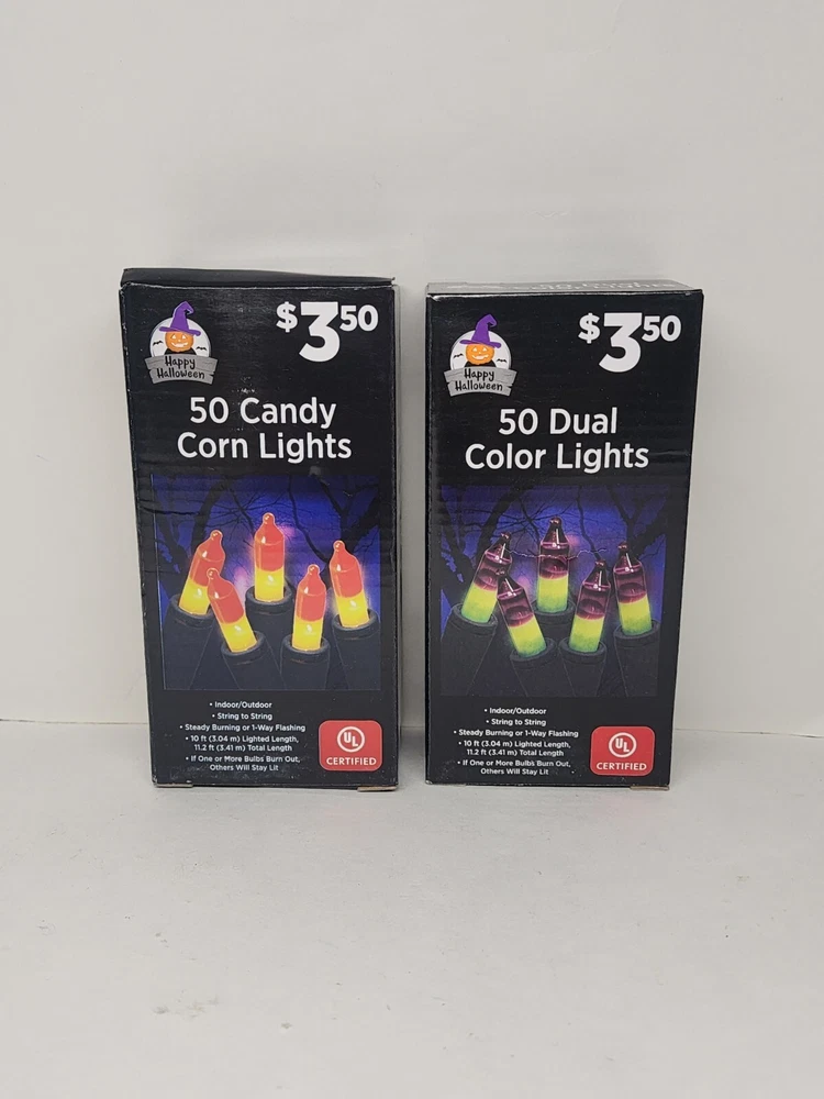 Add a sweet and colorful touch to your home or garden with these 50 candy corn lights. The pack includes 2 sets of dual color lights, each measuring 11.2ft long, perfect for any occasion or holiday. The electric-powered string lights are suitable for indoor and outdoor installation and come with a black cord. The Victorian-style novelty design adds a touch of charm to your decor and creates a warm and inviting atmosphere. With light features, these lights are sure to make any space look magical. thank you for shopping with uswe appreciate your business