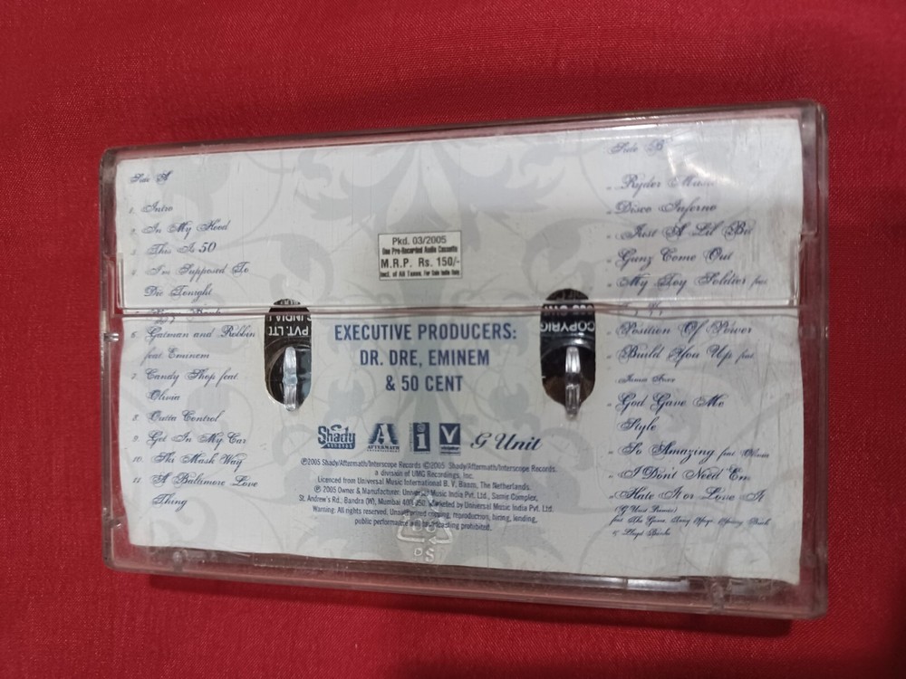 Cassette Condition: Very Good Plus (VG+) Seller Notes: “used audio cassette tape” Inlay Condition: Very Good Plus (VG+) Release Title: etc Format: Cassette Country of Origin: India Artist: 50 Cent Case Condition: Very Good Plus (VG+)