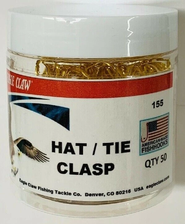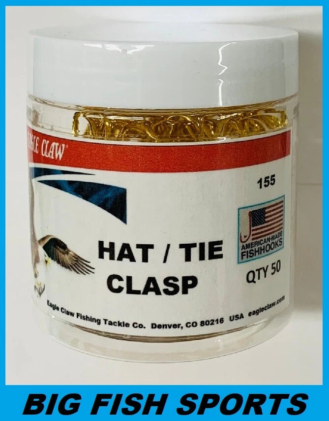 EAGLE CLAW HAT HOOK PINS GOLD COLOR 50 HAT HOOK PINS BY EAGLE CLAW . These hook clips from Eagle Claw will serve perfectly as a stylish tie clip or for clipping on the bill of your hat. Let people know you are a dedicated angler. Hat not included. PACKED LOOSE IN JAR WITH LID. NO RETAIL PACKAGING. THIS LISTING FOR 50 HAT HOOKS! FREE USA SHIPPING! FREE SHIPPING TO USA CUSTOMERS! FREE USA SHIPPING! INTERNATIONAL CUSTOMERS CHECK SHIPPING TAB . THANK YOU! CHECK OUR OTHER listings at our eBay store. We know you have many choices and want you to feel comfortable with your purchases. Here are a few reasons to purchase your fishing supplies from us; Store open 24 hours. Friendly and knowledgeable staff. Super fast shipping. Professional packaging. Highly personalized customer service. e-bay Platinum Seller. Square Trade certified. Fast email response time. Great prices, products and services. 30 Day no-hassle returns policy (see below). Our #1 priority is to make sure that every customer is a satisfied customer. That's why we offer the following No Hassle, 30-day return policy. 1. If for any reason you are not 100% satisfied with your purchase, you may return it within 30 days of the shipping date for a complete refund of the merchandise price. Please include a brief explanation of what is wrong with the item. 2. We will credit your Paypal account, or replace the product, if you prefer. 3. All returns must be received in the complete and original packaging with all included accessories and complete documentation (copy of e-bay sales receipt). 4. Returned merchandise must be returned in its original condition with no signs of wear,use or abuse. In the event that the product is not in the exact same condition as you received it, you may be subject to a minimum 15% restocking fee. 5. Shipping and handling charges are non-refundable. If your purchase was eligible for free shipping, the original shipping cost incurred by Big Fish Sports for the delivery of your merchandise, will be deducted from your credit or refund. 6. Return shipping will be at the customer's expense. 7. Please contact us for complete instructions before returning any items. Returned merchandise received without prior return arrangements will be refused. 8. No returns past 30 days. PLEASE VISIT OUR E-BAY STORE FOR MORE BARGAINS!