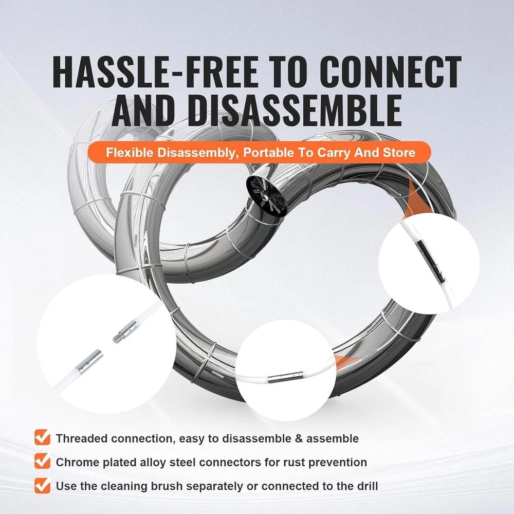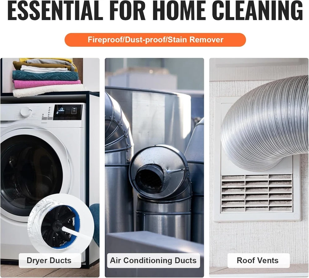50 FEET Dryer Vent Cleaner Kit 37 Pieces Duct Cleaning Brush Reinforced... US Warehouse - FREE & FAST Shipping in USA DESCRIPTION Efficient Cleaning: This pipe cleaning brush is designed for effective cleaning, using high-density bristles to thoroughly clean pipe walls. The closely spaced bristles can penetrate deep, removing debris and blockages, ensuring a clear flow. The high-density bristle design also reduces cleaning time and improves efficiency. Easy Assembly: This pipe cleaning brush uses a threaded connection, making assembly a breeze. Simply align the joints of the two poles and rotate clockwise to secure them. It can be used as a standalone tool or attached to a drill for added convenience. When using with a drill, simply use the chuck connector to attach the brush head to the pole. High Durability with 90° Bendability: Both the pole and brush head of this pipe cleaning brush are made of high-strength nylon, providing excellent durability and wear resistance. They are not prone to wear and can withstand bending up to 90 degrees, making it easy to clean pipe sections with multiple bends, ensuring 360-degree comprehensive cleaning. Extendable up to 50 Feet: This pipe cleaning brush can quickly extend up to 50 feet, allowing you to easily reach distant or deep sections of pipes, such as those running through roofs, basements, and attic spaces. By expanding the cleaning range, it greatly enhances cleaning efficiency. Wide Application: With overall dimensions of 17.32''L x 6.02"W x 2.76"H, this pipe cleaning brush is suitable for various scenarios, including dryer vent outlets, air conditioning ducts, chimneys, roof vents, and more. Regularly cleaning dryer vent outlets, air conditioning ducts, chimneys, and roof vents can help prevent home fire hazards and protect the safety of you and your family. SHIPPING Garantía de Satisfacción 100% Garantía de devolución y reembolso de 30 días Envío rápido y gratuito en EE. UU., almacén de EE. UU. Ofrecemos envío gratuito a los 48 estados inferiores y enviamos dentro de los 3-5 días hábiles, generalmente antes. No aceptamos P.O. Cajas. Proporcione una dirección física. 100% Satisfaction Guarantee 30 Days Return and Refund Guarantee Free and Fast Shipping in USA, US Warehouse We offer free shipping to the lower 48 states and ship within 3-5 business days, usually sooner. We do not accept P.O. Boxes. Please provide a physical address. FEEDBACK 1. Cualquier pregunta sobre su pedido, contáctenos a tiempo, le responderemos dentro de las 24 horas y le daremos una respuesta satisfactoria. 2. Si está satisfecho con nuestros productos y servicios, esperamos tomar su valioso tiempo para dejar comentarios sobre nuestros productos. ¡Gracias! 3. Tu satisfacción es nuestro esfuerzo. ¡Bienvenido a ordenar de nuevo! ¡Qué tengas un lindo día! 1.Any question for your order, please contact us in time, we will reply to you within 24 hours and give you a satisfactory answer. 2.If you are satisfied with our products and services, hope to take up your a little precious time to leave feedback reviews for our products.Thanks! 3.Your satisfaction is our effort. Welcome to order again! Have a great day!