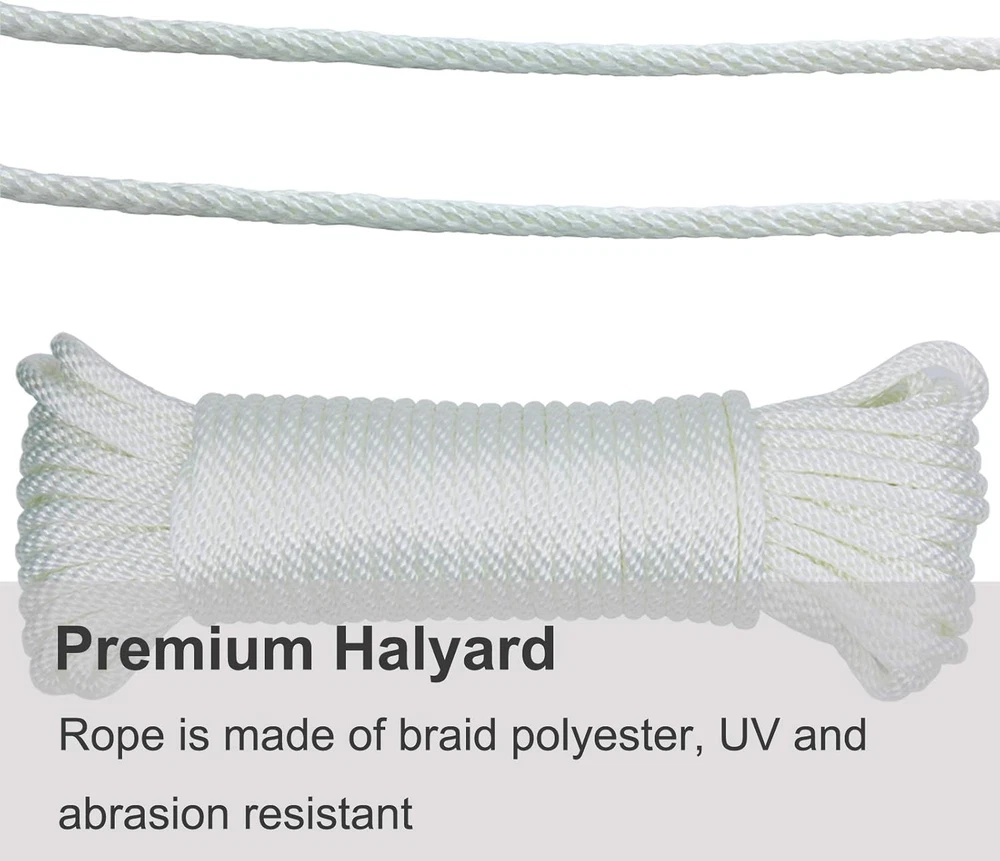 50 FT Flagpole Rope + 2 Swivel Clips, Flag Pole Hardware Accessories Kit