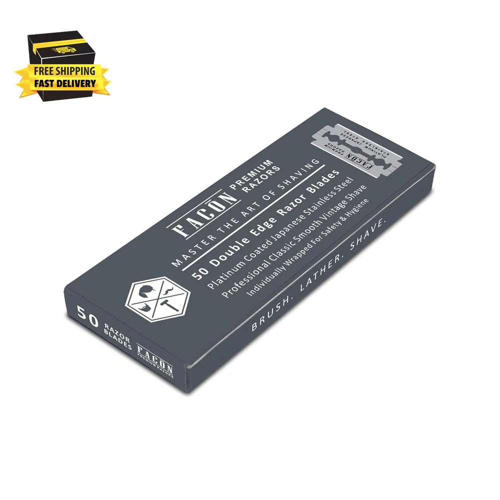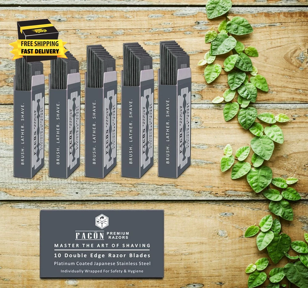Store New Arrivals Add to Favorite View Feedback Contact 50 Facón Platinum Japanese Stainless Steel Double Edge Razor Blades for Safety Razor - Close Smooth Shaving Experience - 200+ Shaves ⭐️⭐️⭐️⭐️⭐️ Description Item model number Facón 50 Product Dimensions 5.5 x 2 x 0.5 inches; 1.76 ounces Age Range (Description) Adult Recommended Uses For Product Shaving Skin Type All Number of Blades 50 Is Discontinued By Manufacturer No SIGNATURE BLADES - Extremely sharp, smooth and comfortable. Barbershop/Salon Favorite! PREMIUM QUALITY - Japanese stainless steel blades, designed for smooth shaving experience ELITE STYLE - Fits all brands of safety/straight/barber razors, Genuine imported materials CONVENIENCE - Each blade is individually wax paper wrapped for safety and hygienic purposes LIFETIME GUARANTEE - Standard lifetime return guarantee, no questions asked. Try it risk-free today! Product Description #1 FACT: CHEAP BLADES DON'T LAST This, on the other hand, ladies & gentlemen, is THE original Facón Premium Razor Blades. Mightily forged from 100% rust-resistant Japanese Stainless Steel, Platinum coated for durability and meticulously designed for a crisp clean smooth shave. With its perfect balance between sharpness and smoothness, you will feel the comfort in your shave. Plus each blade is individually wax paper wrapped for safety and hygienic purposes, good for EPIC 200+ shaves . #2 FACT: SHE CAN TELL THE DIFFERENCE Agreed! The Legendary Facón Premium Razor Blades gives you a Pure Raw Classic shaving experience regardless of how long you've been in this game. Pop your Facón blade in and enjoy a smooth and close shave that's almost impossible to achieve with conventional cartridge razors or electric shavers. It's meant for folks who want to make a statement. That's why straight razors are preferred choice of barbers, salons and hair/beard enthusiasts. And SHE will thank you for it! #3 FACT: I'M SEXY AND I KNOW IT Sure if you say so! But I am thrilled to share the secret. I obviously shave with Facón Premium Razor Blades. It helps my beard, mustache and hairline looking fresh as if I just came from the barbershop. Plus I love to support small businesses. Mom and Pop shop working tirelessly to produce premium quality products and make sure all their customers are 100% satisfied while giving back to the local community. Isn't that awesome? Yup! Welcome to Pure Raw Crisp Clean Classic shaving experience! THE DIFFERENCES 100% Genuine Japanese Stainless Steel (not aluminum) Individually wrapped blades for safety and hygienic purposes Long lasting, very sharp and exceptionally smooth Fits all brands of safety/straight/barber razors Strict in-house quality control, lowest defect rate in the industry Cost effective + No maintenance = Saves time and money ABOUT US We offer the best prices around on high quality products. Our E-store includes media such as books, movies, music and games while offering electronics, toys, sporting apparel, clothing, tools, general home, garden items and more. SHIPPING We are always working hard to ensure your package arrives as soon as possible. Please understand that some factors like weather, high postal traffic, and the performance of shipping companies are outside of our control. We offer free shipping to the lower 48 states and ship within 2 business days of payment, usually sooner. We do not accept P.O. Boxes. Please provide a physical address. For shipping outside of the continental USA, we only use eBay's Global Shipping Program.The item is shipped to KY and then sent to the rest of the world. International customers are responsible for all duties and taxes. Continue to check out in order to calculate costs for shipping the item to your country. Messages regarding eBay's Global Shipping Program MUST be directed at eBay EXCLUSIVELY. RETURNS We offer a 30-Day Return Policy on items which you are not completely satisfied with. You have the option for a full-refund or an exchange of the item. No returns are available on items shipped outside of the USA. PAYMENT We accept PayPal. CONTACT US This page content is yet to come Please ad us to your favorite seller and visit again later Thank You CUSTOMER SATISFACTION We try our very best to make sure every customer is completely satisfied. If there's a problem, message us! We're happy to help. WE ACCEPT Copyright © 2021 AutoDS. | All Rights Reserved