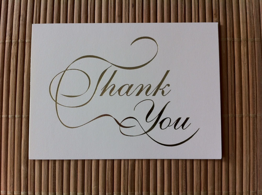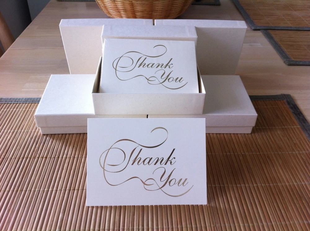50 METALLIC GOLD IMPRINTED “THANK YOU” NOTE CARDS WITH MATCHING ENVELOPES - NEW