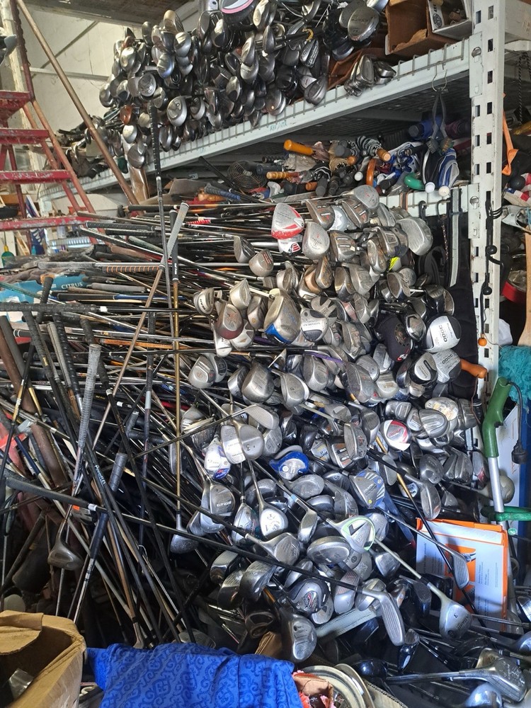 This lot of 50 assorted off-brand named golf clubs includes various lengths, lofts, and flexes for right-handed players. The stainless steel heads and graphite shafts provide durability and performance on the golf course. The clubs in this lot range from fairway woods to mini drivers, chippers, hybrids and more, offering a comprehensive selection for any golfer's needs. These multicolor clubs are perfect for unisex adults looking for a diverse and high-quality set to improve their game Great for thrift, golf store or range Free pick up in Stuart Florida