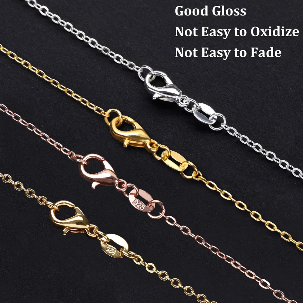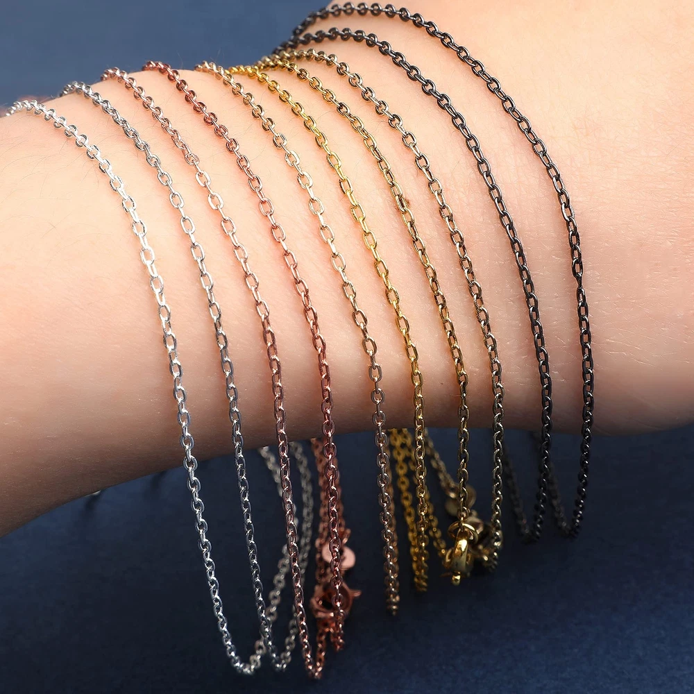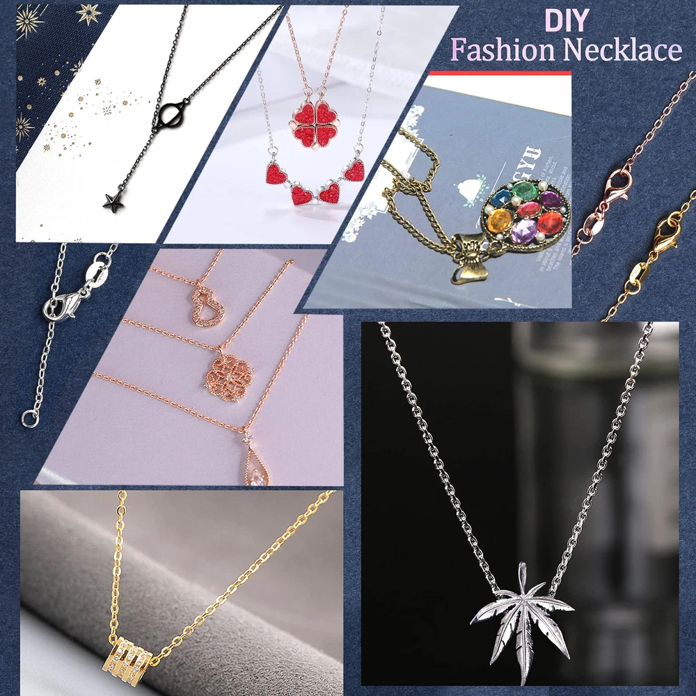 Specification: Material: metal iron Color: gold, silver, rose gold, kc gold, white k, black, ancient gold, antique bronze, bright copper, gun black Size: length: 18inches; thickness: 1.2mm Features: Made of metal iron, sturdy, dainty and shiny, which can easy to hold a pendant and add elegant for you. 10 colors necklace chains match with most pendants, crystal, vintage charms, so you can use them to create your own personality necklaces, will be more meaningful! Package: 50 x 10 Colors Necklace Chains [ 10 COLORS NECKLACE CHAINS ] You will receive 50 pieces necklace chains in 10 colors, gold, silver, rose gold, kc gold, white k, black, ancient gold, antique bronze, bright copper, gun black, 5 of each color. Enough quantity and vairous colors easy to meet you DIY necklace jewelry making crafts. [ DURABLE MATERIAL ] All of necklace chains are made metal iron, which is sturdy, dainty and shiny , and these cable chains are easy to hold a pendant and add elegant for you. [ SIZE INFORMATION ] Necklace cable chain is 18 inches long with lobster clasp, 1.2mm thick. Great size for wearing and adding a small pendant. And each necklace is individually packaged, so it's not easy to be messed up. [ WIDE RANGE OF APPLICATIONS ] Our necklace cable chains match with most pendants, crystal, vintage charms, so you can use them to create your own personality necklaces, will be more attractive. Also you can make a unique necklace as a gift for your family or friends, which will be even more surprising. [ WARM TIPS ] In order to prolong the service life of these necklace chains, please take off the jewelry necklace when bathing, sleeping, exercising or other strenuous exercises, because prolonged contact with sweat will cause the surface to lose its luster more quickly.