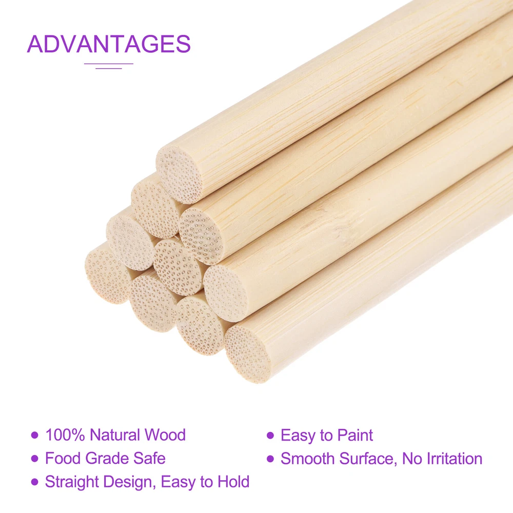 Document APPLICATION: Wooden craft sticks are widely used in making diy wooden crafts and home decorations such as bridges, fairy houses, load-bearing parts on airplane or ship models, as well as for paint mixing and chemical stirring. They are perfect for kid's activities, home improvement projects or professional use.ADVANTAGES:Wooden Dowel Rods are made of natural Birch wood, which will not easily break, and are easy to paint, glue, drill and cut.PACKAGE CONTENT:Paint stirring stick size:10mm x 910mm/3/8" x 36"(L*W)Thickness: 10mm/3/8"Color: Wood Color50 pack of craft sticksNOTE: Please pay attention to the size of the wooden sticks before purchasing, and please check the packaging after receiving the extra-long craft sticks. 50 Pack 3/8" x 36" Wooden Dowel Rods for Making DIY Craft,Wood Color APPLICATION: Wooden craft sticks are widely used in making diy wooden crafts and home decorations such as bridges, fairy houses, load-bearing parts on airplane or ship models, as well as for paint mixing and chemical stirring. They are perfect for kid's activities, home improvement projects or professional use. ADVANTAGES :Wooden Dowel Rods are made of natural Birch wood, which will not easily break, and are easy to paint, glue, drill and cut. PACKAGE CONTENT: Paint stirring stick size:10mm x 910mm/3/8" x 36"(L*W) Thickness: 10mm/3/8" Color: Wood Color 50 pack of craft sticks NOTE: Please pay attention to the size of the wooden sticks before purchasing, and please check the packaging after receiving the extra-long craft sticks. Hot Item Payment 1.We accept eBay payment . 2.Payment must be received within 7 business days of auction closing. Shipping 1.We ship to your eBay or Paypal address. Please make sure your eBay and Paypal address is correct before you pay. 2.Items will be shipped within 1-3 business day when we received payment. 3.Delivery time depends on destination and other factors. Description Policy 50 Pack 3/8" x 36" Wooden Dowel Rods for Making DIY Craft,Wood Color APPLICATION: Wooden craft sticks are widely used in making diy wooden crafts and home decorations such as bridges, fairy houses, load-bearing parts on airplane or ship models, as well as for paint mixing and chemical stirring. They are perfect for kid's activities, home improvement projects or professional use. ADVANTAGES :Wooden Dowel Rods are made of natural Birch wood, which will not easily break, and are easy to paint, glue, drill and cut. PACKAGE CONTENT: Paint stirring stick size:10mm x 910mm/3/8" x 36"(L*W) Thickness: 10mm/3/8" Color: Wood Color 50 pack of craft sticks NOTE: Please pay attention to the size of the wooden sticks before purchasing, and please check the packaging after receiving the extra-long craft sticks. Hot Item Payment 1.We accept eBay payment . 2.Payment must be received within 7 business days of auction closing. Shipping 1.We ship to your eBay or Paypal address. Please make sure your eBay and Paypal address is correct before you pay. 2.Items will be shipped within 1-3 business day when we received payment. 3.Delivery time depends on destination and other factors.