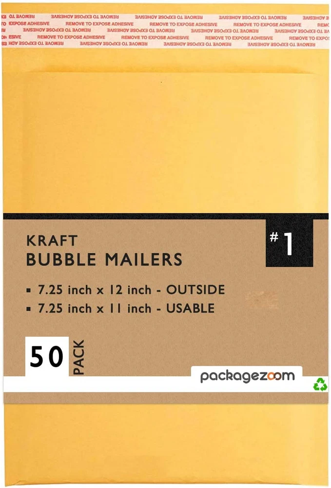 Quantity and size - this includes 50 kraft bubble mailers, each measuring 7.25x12 inches. The #1 size is specifically tailored for shipping small-sized items, ensuring a compact and secure fit which reduces movement and potential damage during transit. Kraft material - crafted from quality kraft paper, these mailers provide a sturdy exterior that is resistant to tears and punctures. The natural strength of kraft material offers reliable protection, ensuring your items are safeguarded throughout their journey. Bubble lining - inside each mailer is a layer of premium bubble cushioning. This added protection is essential for shipping delicate or breakable items, as it absorbs shocks and impacts, greatly reducing the risk of damage during shipping and handling. Convenient self-seal closure - equipped with a strong self-sealing adhesive strip, these mailers make packing both quick and secure. The adhesive provides a reliable closure, keeping the contents securely inside and offering a tamper-evident seal that minimize damage of your package. These kraft bubble mailers offer protection and a lightweight design, making them ideal for frequent shippers, including businesses and individuals. Versatility in application - ideal for e-commerce businesses, office use, or personal mailing needs, these mailers are versatile enough to accommodate a wide range of items like jewelry, small electronics, documents, and other retail products. Their professional and clean appearance also makes them ideal for sending gifts or promotional materials. Packagezoom 7.25x12 kraft bubble mailers #1, in a pack of 50, are an ideal choice for those seeking a reliable, eco-friendly, and cost-effective mailing solution. These mailers are specifically designed to protect and secure small-sized items during transit. Made from durable kraft paper with a protective bubble lining, they provide excellent protection against damage. The self-seal closure adds convenience and security, and their lightweight design helps save on postage costs. These mailers are also an environmentally responsible choice, made from recyclable materials. Ideal for a variety of uses, from business to personal mailing, these kraft bubble mailers are a practical choice for efficient and sustainable shipping.