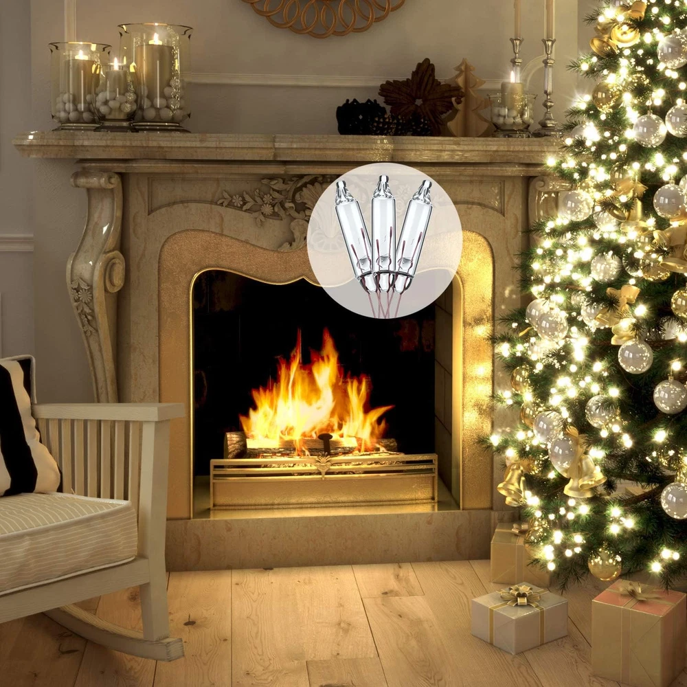 Bulb specifications: 3.5V, 125 mA, 0.43 watt; Before purchasing, confirm voltage and wattage by referring the white tag next to the male plug Quantity: the package includes 50 counts clear Christmas lights, enough for you to replace other mini bulbs Feature: these mini Christmas light bulbs are designed with pinched base, to fit in most types of string lights DIY Decor: these Christmas light sets of lights can be connected together, use them to decor your Xmas tree or any other places as you like, creating a shiny glitter warm sweet atmosphere for your family and friends Apply to: 3.5V bulbs are typically applied in 35 and 70 light strands, these bright and adorable LED fairy lights can be safely applied for indoor and outdoor usage; Suitable to decorate your pergola, hedge, Christmas tree, etc. Product description