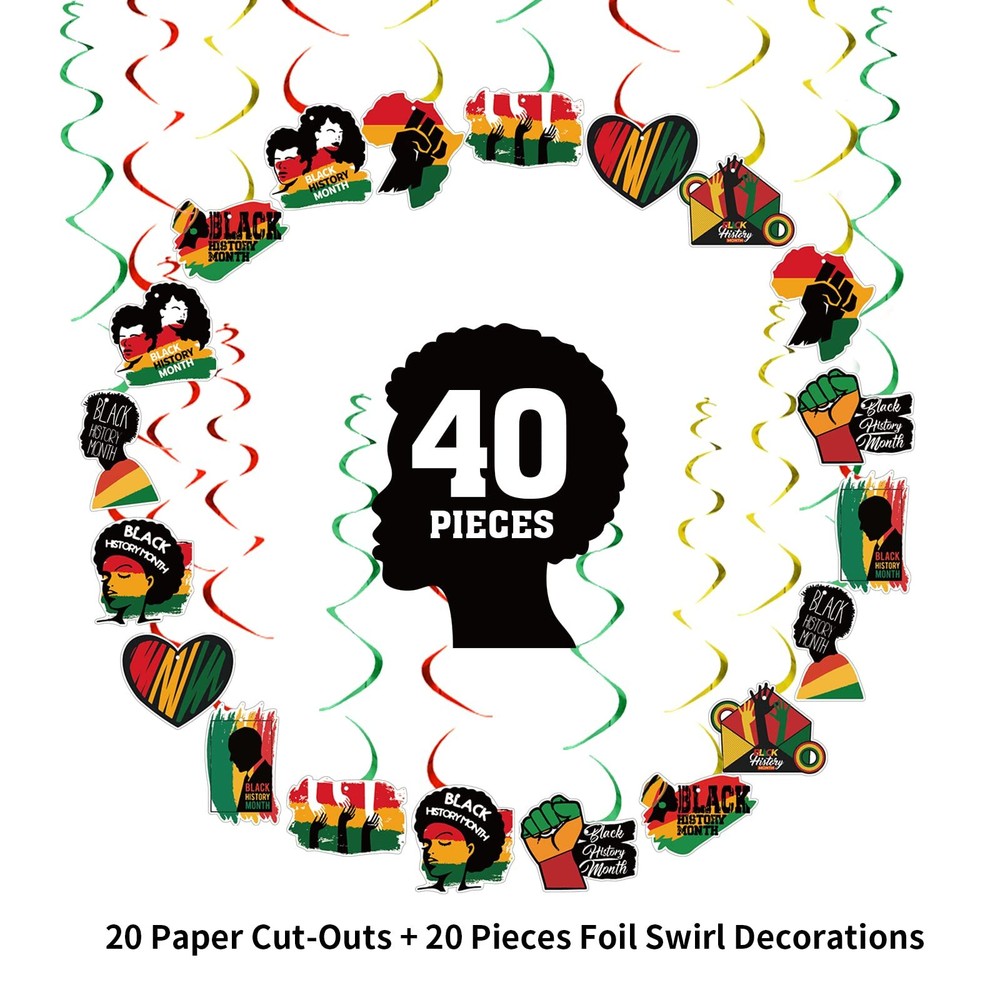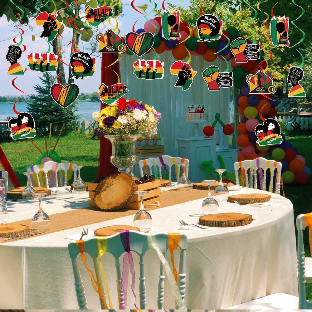 50 Pcs Black History Month Hanging Swirl Decorations for Party & Events