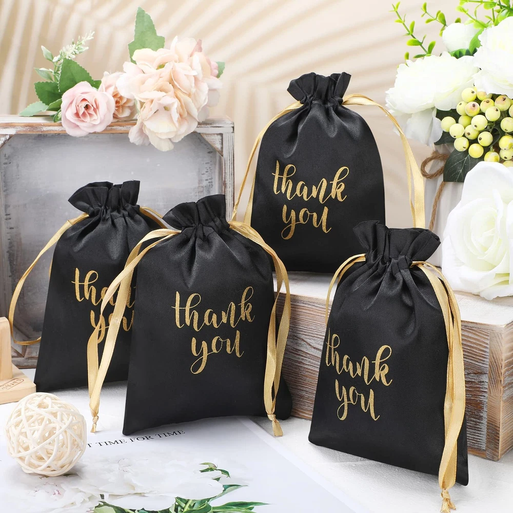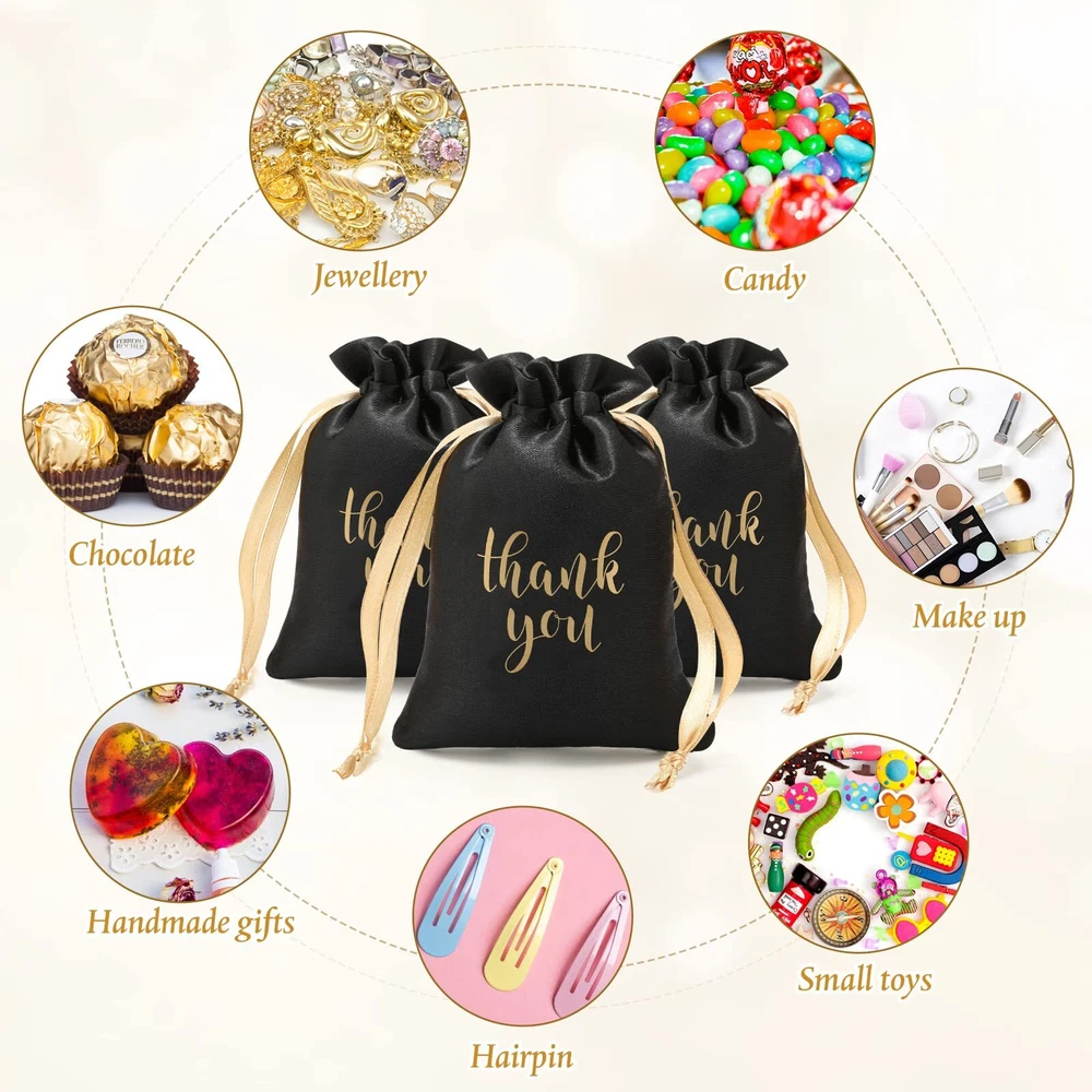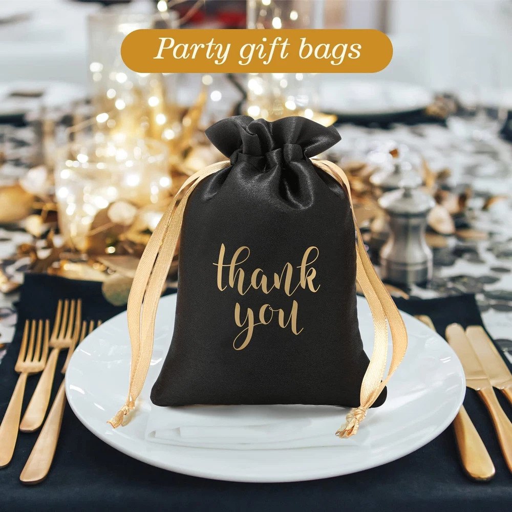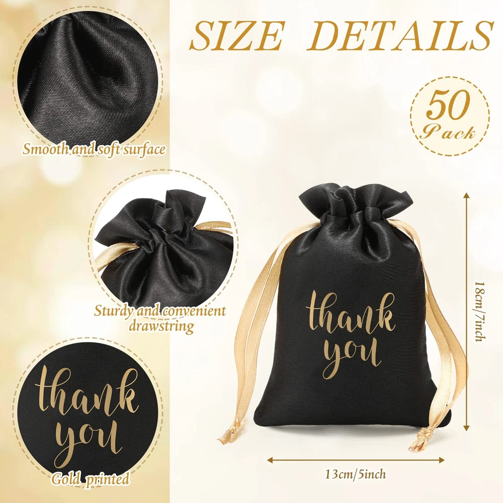 Features: It is an ideal choice for you to send these wedding favor gift bags to your neighbors, daughters, friend, colleagues, classmates, girlfriend and more on Christmas, housewarming days, birthdays and Thanksgiving Day. The thank you favor bags will be charming items for parties, help you to small objects, decorate the party, and the satin sachet can also help you to prepare gifts. Specifications: Material: satin fabricColor: as shownSize: approx. 13 x 18 cm/ 5 x 7 inchesPackage includes: 50 Pieces of satin bags with drawstring Notes: Manual measurement, please allow slight errors on size. The color may exist a slight difference due to different screen displays. Sufficient Quantity and Proper Size: there are 50 pieces of satin bags with drawstring in the package, each measures approx. 13 x 18 cm/ 5 x 7 inches, which will make your gift look heartfelt and delicate, abundant quantity can meet your different needs and decorative purposes, can be applied as jewelry bags, gift wrapping bags, candy bags and trinket bags Elegant Design: these thank you gift bags are printed with words of [thank you], an elegant color matching makes these bags charming and eye catching, better decorating your gifts and party favors; Please note that some bags will be wrinkled, you can iron the bag at a low temperature to make the bag flat Fine Workmanship: the thank you party favor bags for wedding are made of quality satin fabric, soft and comfortable, light and breathable, they look elegant, silky smooth and textured, they can support you for a long time and can allow you to have a pleasant using feeling Easy to Open and Close: each thank you jewelry bags comes with a drawstring design, which provides much convenience to open and close the bag, that also helps avoid losing your belongings held inside after you tighten the satin bags with drawstring, practical and delicate; You can use wedding drawstring bags to hold small gifts, jewelry, cosmetics, candy, snacks, soap, cards and other small items Widely Applicable: these thank you satin gift bags can be applied to package gifts in parties, companies, churches, hotels, and they are also suitable for weddings, bridal showers, birthday, anniversaries, Thanksgiving day and other festivals to package gifts for guests, they will be very happy to receive gifts wrapped in silk bags with drawstring