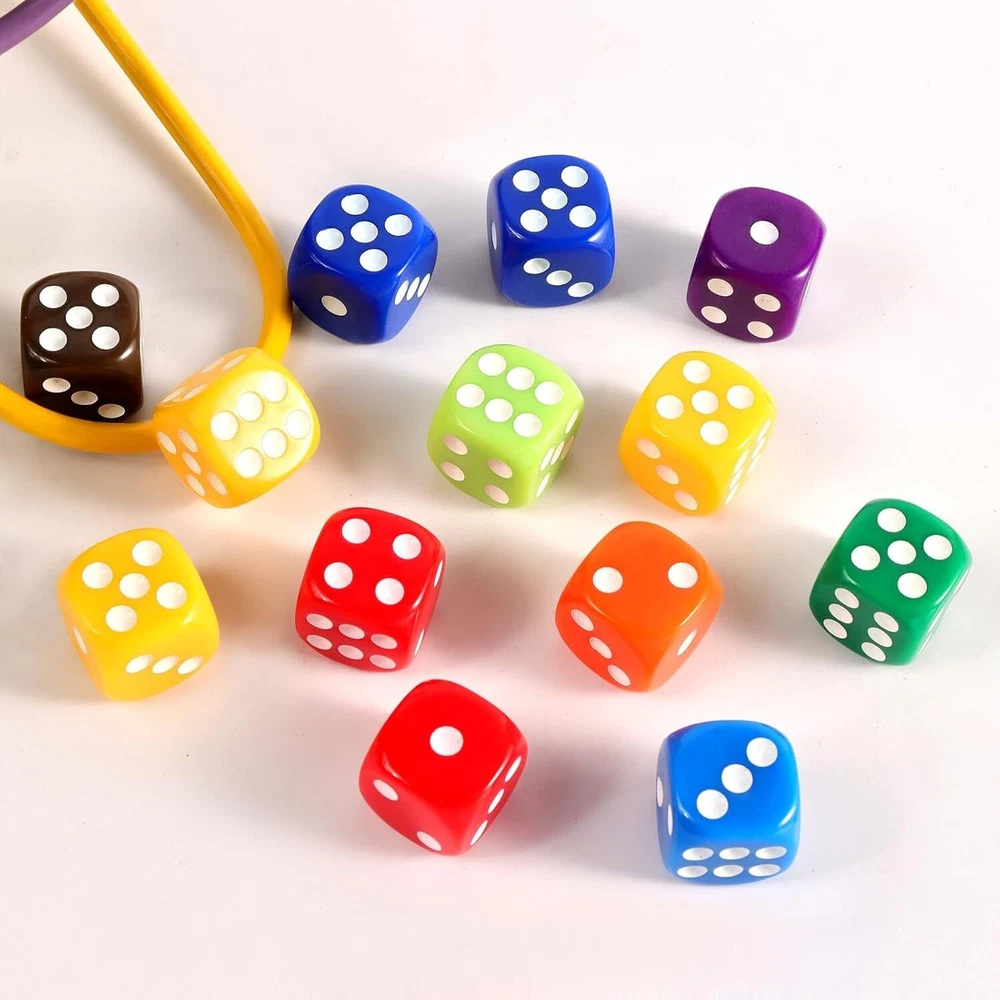 50 Pieces Colored Dice 6 Sided Dice for Board Games 14mm Bulk Dice for Math DURABLE MATERIAL: The 6 sided dice are made of sturdy plastic with rounded edges for long-lasting durability and smooth rolling, providing fair results for a more fun gaming experience. COLORFUL DICE SET: 50 pieces 6 sided dice in 10 assorted colors supplied in a reusable storage box, easy for storage and carrying. STANDARD COLORIZED DICE: 16mm (5/8 inch) game dice, medium size, easy to hold and throw, make you more comfortable in games and learning. Return Policy: We offer a 30 day return policy from the receiving date. Please contact us for a Return Label. Please use our return label provided by us because it will go back to our supplier. Feedback: Your satisfaction is very important to us! If you have any problem with your order, please contact us and we will do our very best to make you satisfied. As long as you are happy with your purchase, please leave a positive feedback for us. We will always leave you a positive feedback in return. If you have any problem with your purchase, please do not leave a negative feedback. Please Contact us ... and your issue will be solved quickly and positively We are a small family-owned business trying to make it, not a huge company that doesn't care ... We will ALWAYS do our best for you!