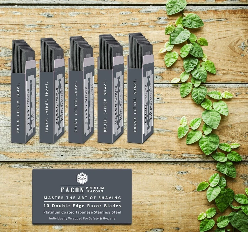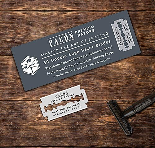 50 Facón Platinum Japanese Stainless Steel Double Edge Razor Blades for Safety Razor - Close Smooth Shaving Experience - 200+ Shaves Product Details Is Discontinued By Manufacturer : No Product Dimensions : 5.5 x 2 x 0.5 inches; 1.76 ounces Item model number : Facón 50 Manufacturer : Facón Razors Brand: FACON Number of Blades: 50 Recommended Uses For Product: Shaving Age Range (Description): Adult Skin Type: All SIGNATURE BLADES - Extremely sharp, smooth and comfortable. Barbershop/Salon Favorite! PREMIUM QUALITY - Japanese stainless steel blades, designed for smooth shaving experience ELITE STYLE - Fits all brands of safety/straight/barber razors, Genuine imported materials CONVENIENCE - Each blade is individually wax paper wrapped for safety and hygienic purposes