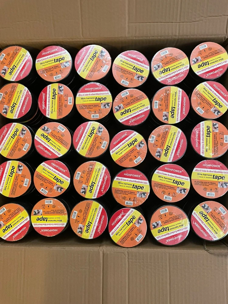 1. Hand-tearable tape can be easily use bundling wire and prevents rattles. 2. Very high noise reduction effect and high abrasion resistance. 3. Flexible and smooth. 4. Soft backing surface. 5. Strong stickiness but not easy to leave glue marks. Size : 19MM X 15M (50 ft) Quantity : 50 Rol l s