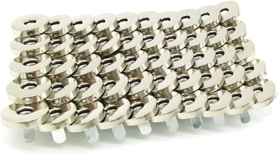 These magnetic snap clasps are fantastic! They’re strong, easy to install, and hold securely. Perfect for bags, purses, and DIY projects—no more struggling with buttons. The silver finish looks sleek, and the set of 50 gives plenty for multiple crafts. A must-have for anyone who loves making accessories!