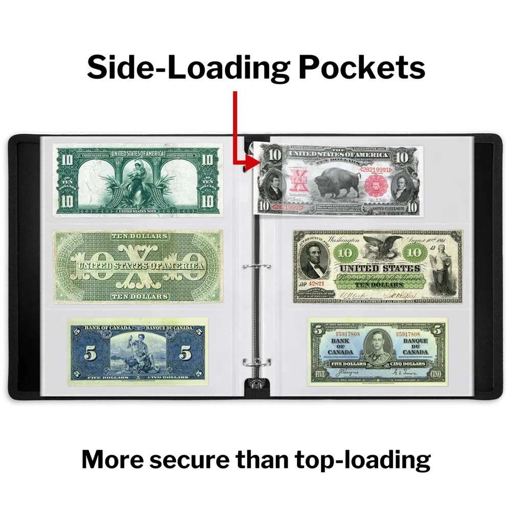 Dunwell Binder Currency Sleeves for Collectors - (50 Pack), Acid-Free 3-Pocket Clear Plastic Refill Pages for Currency Collection Album, 3-Ring Binder Sheet Protectors for Bills, Banknotes or Coupons Use refillable 3-hole punched plastic sleeves for money collection binders, Bill collection book, Coupon organizer, or regular 3-ring binders. 50-Pack: Stores and displays 150 banknotes (showing front and back), Dollar bill plastic sleeves have 3 side-loading pockets, keep valuable paper money collection more secure than top-loading pages. Keep Collectibles Safe and Protected: PVC and acid free currency sleeves are constructed of durable heavyweight poly, archival quality, no ink transfer. Perfect for long term storage. Dimensions: Three pockets, each is 8” wide, 3-5/8” high, Currency holder for bills measures 9 x 11.25", including three-hole punched strip, Fits standard three-ring binder (not included). Many Uses: Plastic protector sleeves can be used for coupons, collectible sports or concert tickets, foreign currencies, old confederate bills or other paper money. Keep your collections organized. Shipping We offer FREE shipping on all orders! We ship within Three business days of payment, usually sooner. We use a selection of shipping services such as UPS, FedEx, USPS etc. We only ship to the lower 48 states, no APO/FPO addresses or PO Boxes allowed. Local pickups and combined shipping options are not provided at this time. Return You can return a product for up to 30 days from the date you purchased it. Any product you return must be in the same condition you received it and in the original packaging. Please keep the receipt. Payment We accept payment by any of the following methods: PayPal Please pay as soon as possible after winning an auction, as that will allow us to post your item to you sooner! Feedback Customer satisfaction is very important to us. If you have any problem with your order, please contact us and we will do our best to make you satisfied. Contact Us If you have any queries, please contact us via ebay. We usually respond within 24 hours on weekdays. Please visit our eBay store to check out other items for sale! Thank you for shopping at our store.