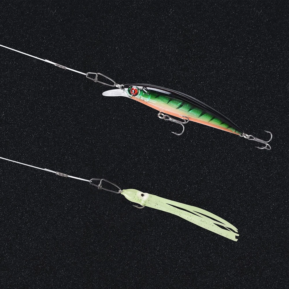 🐟 More Sensitive: Fluorocarbon leader is non-permeable to water and therefore does not absorb water. As a result, fluorocarbon leader does not stretch. This makes the rigs much more sensitive, even to the slightest bites. 🐟 Higher Abrasion Resistance: The fluorocarbon fishing leaders here are more abrasion-resistant than nylon mono fishing leaders. Also, this fluorocarbon leader is thinner in diameter than the monofilament leader of the same breaking strength. 🐟 Invisible: Light refraction factor of fluorocarbon is very similar to that of freshwater, making these fluorocarbon leaders almost invisible in the water. fluorocarbon fishing leader enables fishermen to successfully 'serve' a bait/lure even to the wariest fish and land the fish. 🐟 Sink Faster: In water, fluorocarbon leader sinks faster than nylon monofilament leader, which is very important in many situations. With freshwater/saltwater fluorocarbon fishing leader, you'll notice a real jump in your catch rate. 🐟 About The Product: This package comes with TWENTY pieces of 20" fluorocarbon fishing leaders, and the strength of the fluorocarbon leader line is 50 pounds. If you have any questions or concerns, feel free to us.