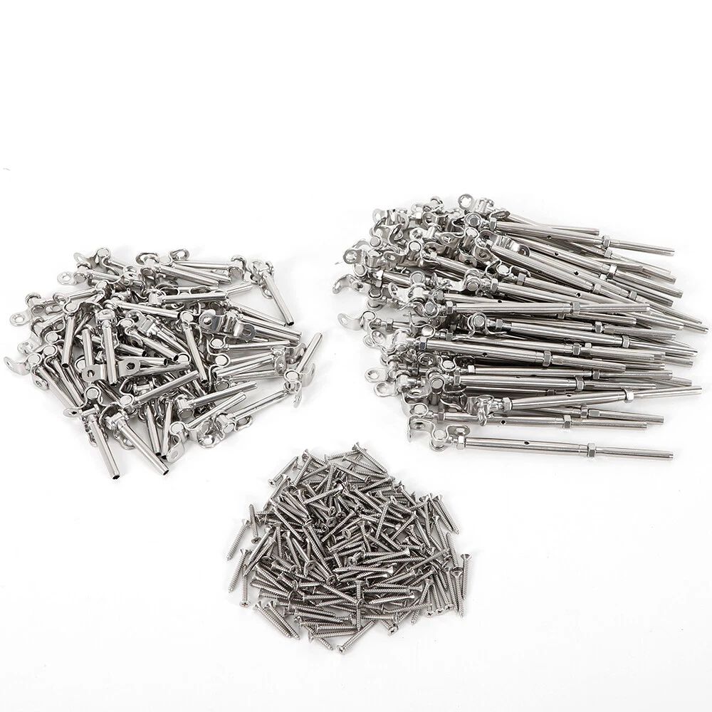 50 pcs Stainless Steel Tensioner Hardware Kit for 3/16" Cable Wire Railing USA
