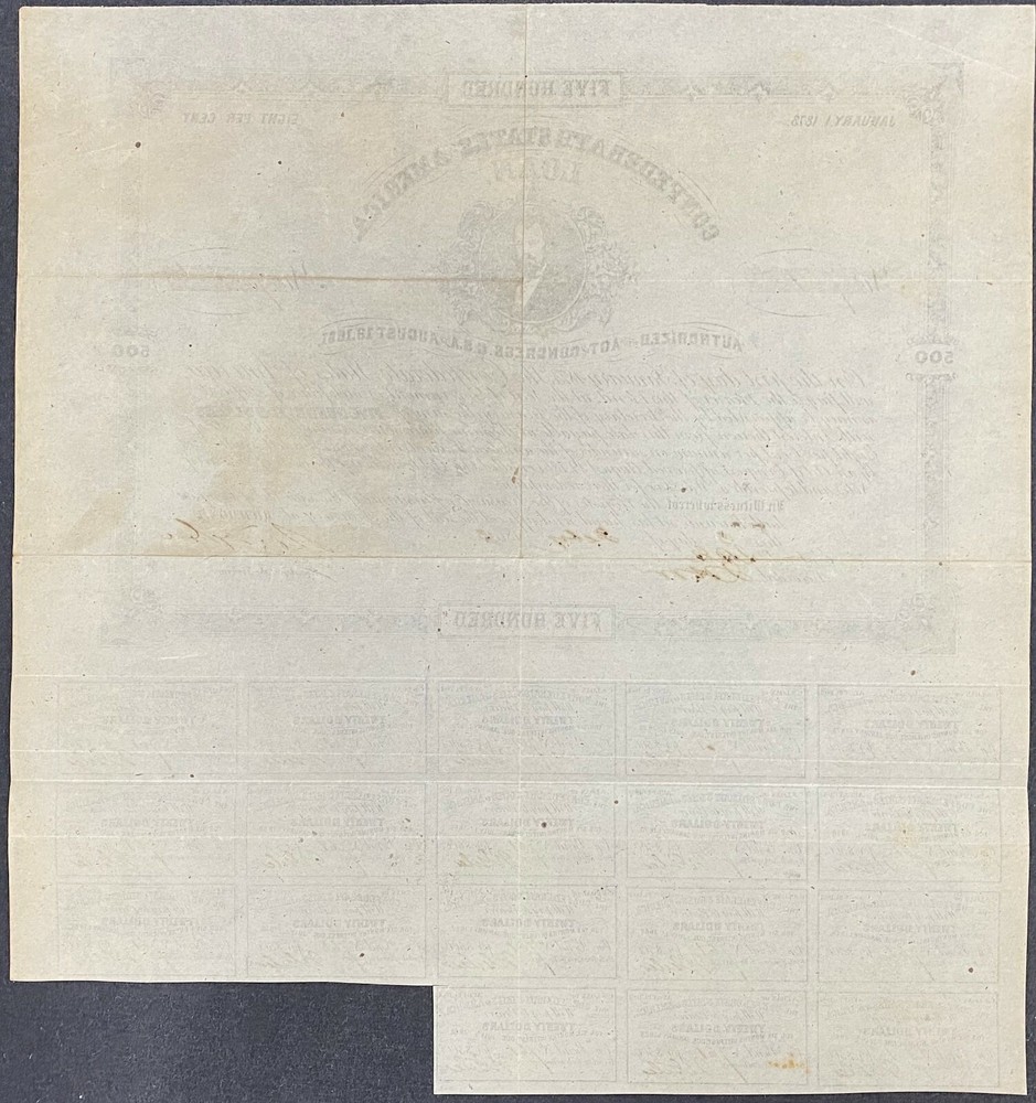 $500 Confederate States Coupon Bond - Criswell 62, Ball 77 Civil War Era Collectible