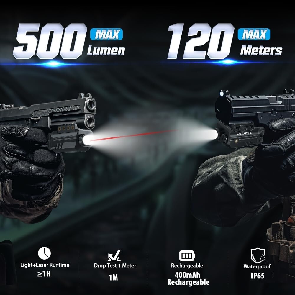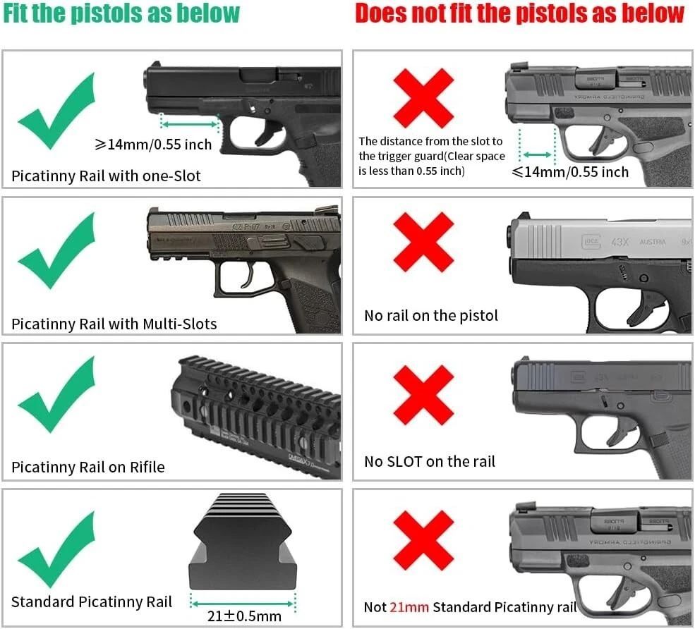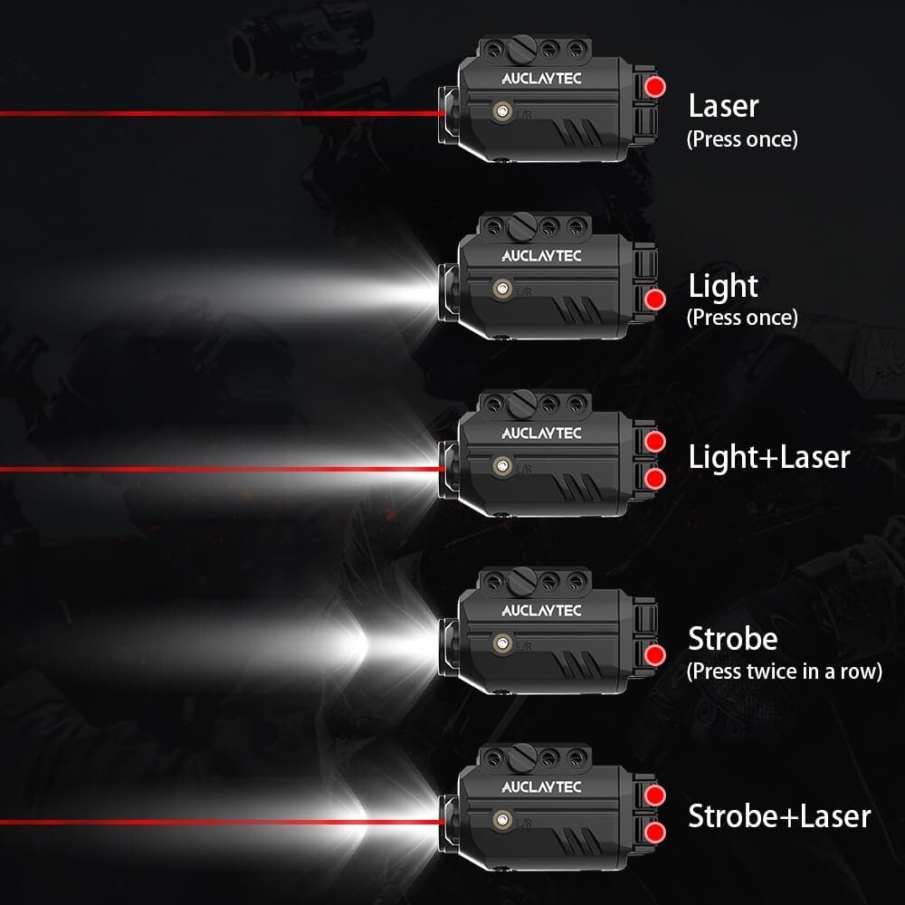 500 Lumen Red Beam Sight with Tactical Flashlight Combo Glock and Picatinny Rail Product Description : Compact Compatibility: Four-hole adjustable rail offers your the best position; Tactical flashlight provides perfect fit with a variety of compact or subcompact handguns, Installation space(from the slot to the trigger guard)must be greater than 14mm Solid and Durable: The compact pistol laser flashlight combo is shockproof, having passed the 1m drop test; Designed for ruggedness, it offers superior performance in harsh conditions Safety Adjustable Laser Sight: A class IIIA of bright red laser beam with an output intensity of < 5 mW; L/R and U/D on the gun flashlight to adjust the laser position (Allen wrench included) Type-C Charging: Built-in rechargeable battery with advanced charging method for USB-C charging port, ensuring your gun light is always ready to use when you need it; Power indicator when charging 5 Lighting Modes: Steady/Laser/Steady + Laser/Strobe/Strobe + Laser; Press the laser button to turn on the laser, press the light button to turn on the stable white light, and press it twice in a row to turn on the strobe mode Double Side Switch: You can easily switch between, compact pistol flashlight offering versatile beam for different situations; Flashlight only runs for 1 hour, laser only runs for 6 hours, light and laser can run simultaneously for 1 hour Top-Notch USA Seller | S wift USPS/UPS delivery | Shipped within 1 Business Day | Quick Replies | Free Shipping | Prompt Communication Contact us We value open communication with our customers. Our team is committed to providing quick responses to any queries or concerns you may have regarding our products or your order. Please feel free to contact us on eBay's Internal Message System for any questions or concerns you may have. Our dedicated customer service team is committed to providing exceptional support and ensuring your shopping experience with us is nothing short of excellent. Customer Service We strive to offer the best quality products to our customers. Each item listed in our store undergoes rigorous quality checks to ensure customer satisfaction. If you have any problems, we are very glad to help you. Please message us directly through eBay for faster response. Your inquiry is important to us and we'll respond within 24 Hr. Your order will be shipped within 1 business days upon full payment received. [ Due to the different monitor and light effect, the actual color of the item might be slightly different from the color showed on the pictures. Thank you ! ]