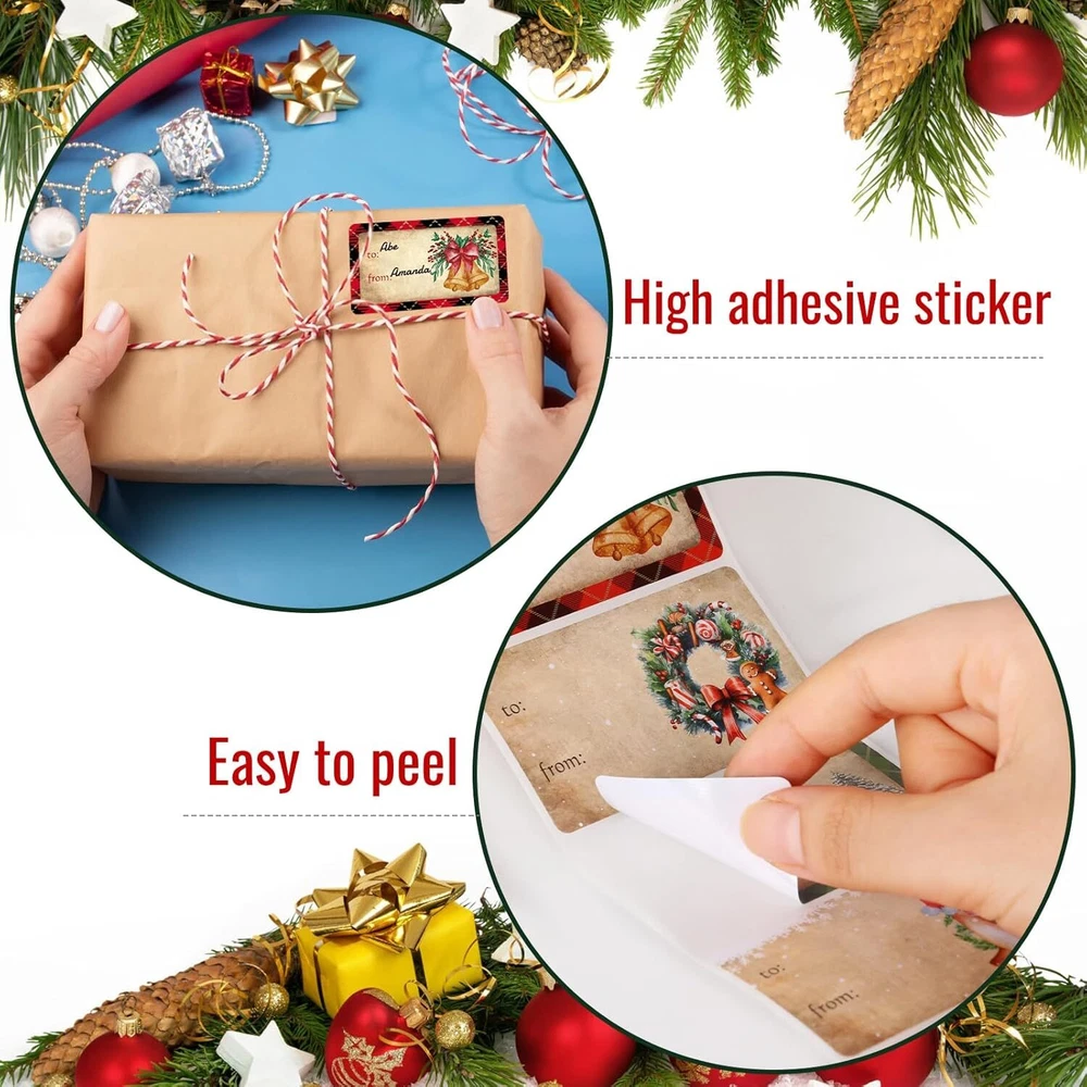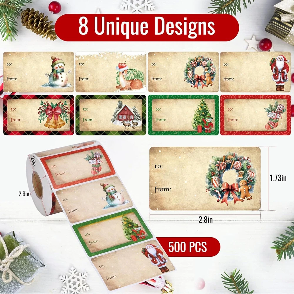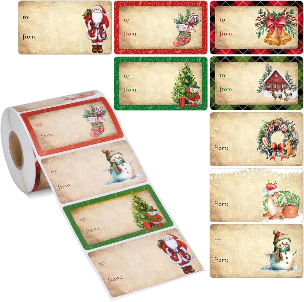 500 PCS Christmas Gift Tags Christmas Santa Claus Stickers Self Adhesive Vintage