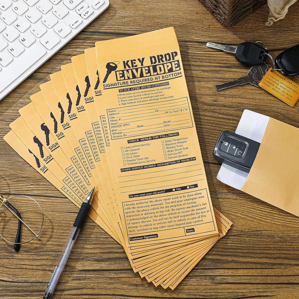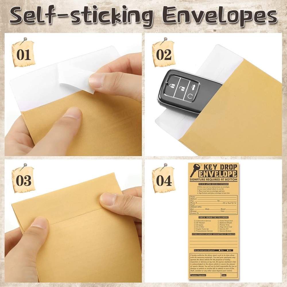 Sufficient to Meet Your Needs: you will get 500 pieces of drop key envelopes, you can use them to hold your cards; Sufficient quantity will meet your using needs, and you can share them with your family Reliable Material: our self adhesive envelopes are made of reliable kraft material, safe and sturdy, there is adhesive on the back, will help you seal the envelope and keep the item from getting lost; And their reliable material will serve you for a long time Portable Design: overnight drop box envelopes have proper size in approx. 4.125 x 9.5 inches/ 10.48 x 24.13 cm, can hold your keys, cash, and other items; And you can put them into the mailbox, which will bring you convenience in using Useful and Practical: our overnight envelopes are designed in black font, including lots of information, like name, address, service details, date, signature, etc., print clearly for easy reading, will give you a good using experience Easy to Use: each key drop envelope has the clear template, convenient for you to record maintenance and other work details; It is light and portable, won't take up too much space, you can put it into your bags, and you can carry it to other places easily