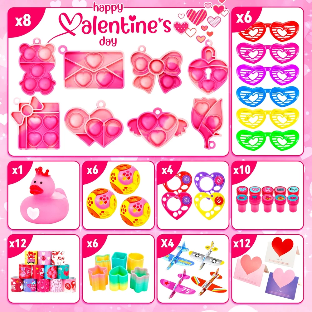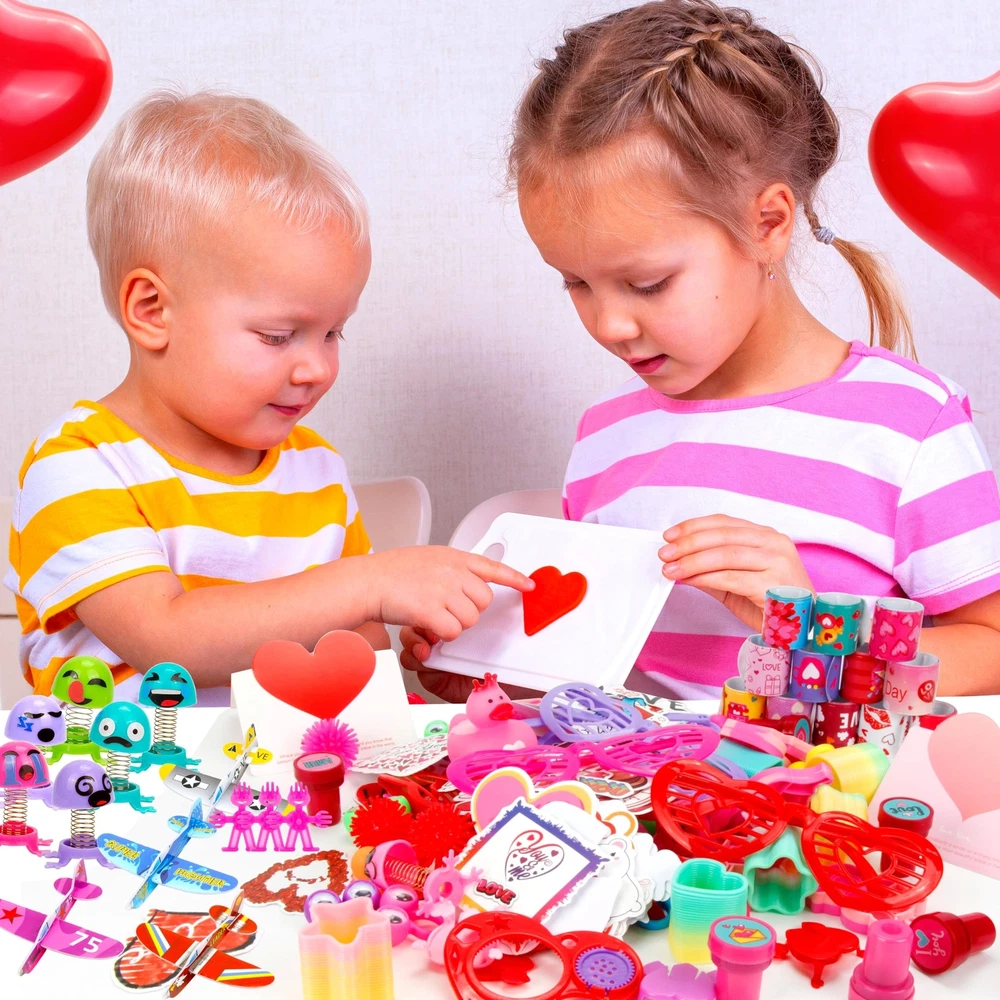 500+ Pcs Valentine's Day Party Favors Toy Assortment Set Valentine Goodie Bag Stuffers Valentine Prizes Rewards Bulk for Kids Students Valentine Party Favors Treats School Classroom Gift Exchange Product Details Product Dimensions: 8 x 8 x 4 inches Item Weight: 1.95 pounds Country of Origin: China Manufacturer recommended age: 36 months - 10 years Manufacturer: OCTERIC 500+ Huge Assortment: Come with so many Valentine craft options, includes fidget toys, mochi squishy toys, slap bracelets, stamps, pull rings, stickers, foam aircraft, balloons, bouncing frog, spining top and ect...These toys are suitable for children and adults of all ages. Premium Safe Material: All of party favors toys are made of durable silicone or plastic. No sharp edge and safe for kids and adults to play. Meets US Toy Standards. Perfect fits for party favors goody bags, classroom prizes and Easter eggs. Valentines Day Surprise: With these party toys decorating the party, you will be completely deep into the atmosphere, take an active part in activities and enjoy the party, everyone would have a good fun. Favor Love with these Gifts: Whoever you are looking to give a little present to show your appreciation on February 14th, there are many ideas out there. These DIY Valentines Day Party Favors for Kids are not only super cute, but budget friendly and easy to make too ! They make great trinkets for parties and also classroom Valentines Gifts too. Feature: Whoever you are looking to give a little present to show your appreciation on February 14th, there are many ideas out there. These DIY Valentine’s Day Party Favors for Kids are not only super cute, but budget friendly and easy to make too ! They make great trinkets for parties and also classroom Valentine’s Gifts too.