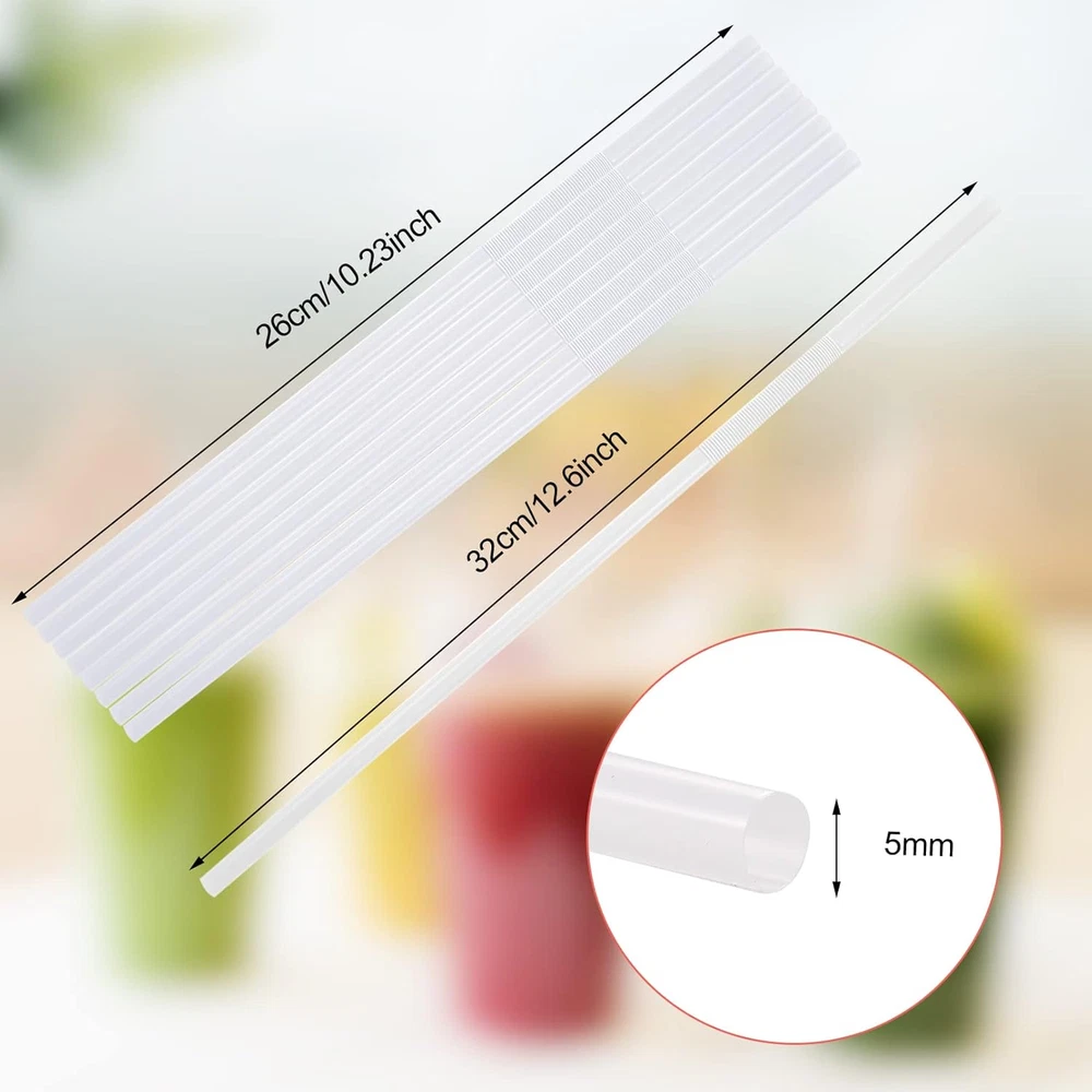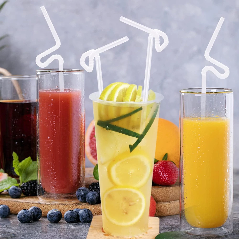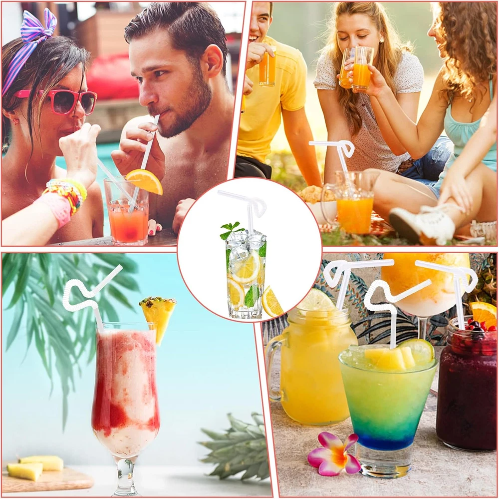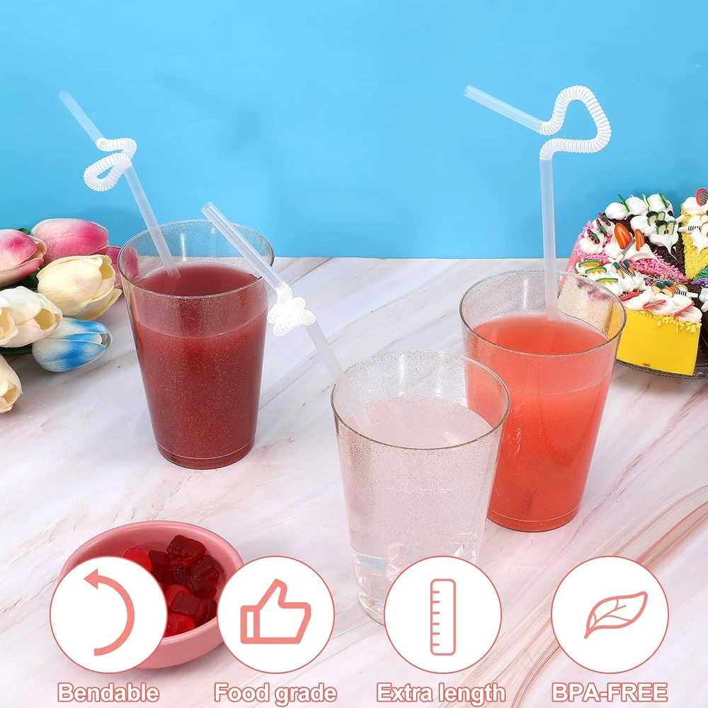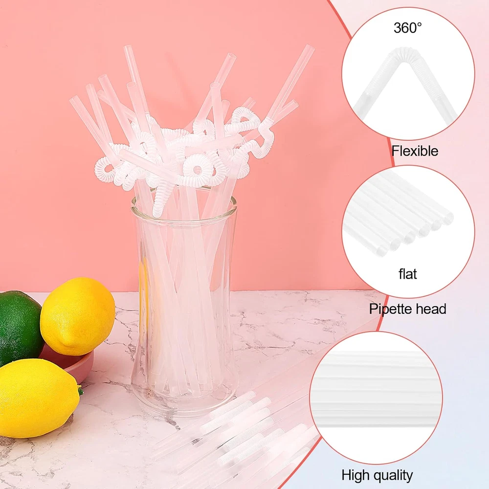 Value Pack: You will receive 500pcs white straws, the length is 26cm (10.2 inches), can be stretched to 32cm (12.6 inches), and approximately 0.23 inch in diameter. Sufficient quantity can meet your cold drink needs or party use. High Quality: Our long straws are made of food-grade plastic material, soft, smooth and BPA-free. Bendable straws are finely crafted with flat ends, no sharp corners and durable. Flexible Bending: The drinking straws have a flexible folding area at the top that can be easily bent to the angle you want. It can also be bent into various interesting shapes at will, adding fun to birthday parties, family gatherings and daily drinking. Medium Length: This disposable plastic straws are good length to fit different heights of cups or can be cut short to the size you want for smaller cups or kids cups. It can also be used for crafts to make all kinds of funny and cute shapes. Wide Application: These flexible straws can be used for a variety of drinks, such as iced drinks, juice, soda, milk, cola, etc. It can also be used in cold drink stores, coffee shops, bars, cafes and other places. Product Description The drinking straws are medium length and can be stretched to 26 cm (10.2 inches). Suitable for iced drinks, juices, sodas, milk, colas or other beverages. This disposable plastic straws can be bent freely, easily bent to your desired angle or in a variety of interesting shapes, adding fun to birthday parties, family gatherings and daily drinking.