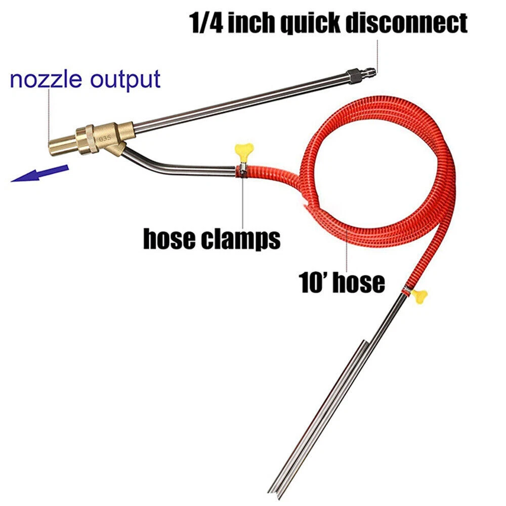 Descriptions: SANDBLASTING PACKAGING KITS: HIGH-QUALITY & DURABLE MATERIAL: WORKING PRINCIPLE: WIDELY APPLICATION: EASY to USE: Specification: Product name: Pressure Washer Sandblasting Kit Material: brass, stainless steel, plastic and ceramic Color: as show Hose: 3m/9.84ft Max Working Pressure: 5000 PSI Max Temperature: 60℃/140°F Connection: 1/4" Quick Connect Plug Washer wand: 40.5cm/16 inch Sanding wand: 40.5cm/16 inch Application: removing rust, graffiti, paint, grease baking and scale Package List: 1 x Pressure Washer Wand (Water Input) 1 x Sand Wand (Sand Input) 1 x Hose 6 x Hose Clamps 1 x Goggles 2 x Long Ceramic Nozzles 2 x Short Ceramic Nozzles 4 x Rubber Bands How to Set Up: Step 1: Connect the washer wand to the pressure water gun. Step 2: Connect the 1/4 connector to th Pressure Washer Sandblasting Kit Sand Blaster for Pressure Washer 5000PSI US Hot Descriptions: SANDBLASTING PACKAGING KITS: You will get a 3m hose, 16" pressure washer wand (water input), 15 3/4" sand wand(sand input), goggles, 4 hose clamps, 3 sets ceramic nozzles (There is a pair of nozzles in the sandblaster), and 6 O-rings. HIGH-QUALITY & DURABLE MATERIAL: Sandblasting kits are made of durable materials, brass, and stainless steel, which are resistant to corrosion, and abrasion, and have stable performance. Its working pressure can reach 5000PSI and the temperature can reach 60 ℃ / 140 °F. WORKING PRINCIPLE: The pressure washer sandblaster kit is used to inject sand into the water system for cleaning. Use dry silica sand, baking soda, fine sand, or washed river sand for better results. If the hose is blocked, please rinse it with clean water. WIDELY APPLICATION: The pressure washer sandblaster kit is mainly used to remove rust, graffiti, paint, grease scale, and other stubborn materials, and is ideal for household and factory abrasive cleaning! Our power sandblaster kit can greatly improve efficiency, and remove rust faster and more conveniently. EASY to USE: 1/4 inch quick connector on the end of a gun, suitable for most pressure washers. In addition to the ceramic nozzles in the sandblaster, we also offer two additional sets of replaceable ceramic nozzles that you can replace at any time. Specification: Product name: Pressure Washer Sandblasting Kit Material: brass, stainless steel, plastic and ceramic Color: as show Hose: 3m/9.84ft Max Working Pressure: 5000 PSI Max Temperature: 60℃/140°F Connection: 1/4" Quick Connect Plug Washer wand: 40.5cm/16 inch Sanding wand: 40.5cm/16 inch Application: removing rust, graffiti, paint, grease baking and scale Package List: 1 x Pressure Washer Wand (Water Input) 1 x Sand Wand (Sand Input) 1 x Hose 6 x Hose Clamps 1 x Goggles 2 x Long Ceramic Nozzles 2 x Short Ceramic Nozzles 4 x Rubber Bands How to Set Up: Step 1: Connect the washer wand to the pressure water gun. Step 2: Connect the 1/4 connector to the hose. Step 3: Insert the sand wand into the medium (such as dry silica sand, baking soda or washed river sand). Note: Please make sure that the sand is dry, otherwise it cannot be used. Step 4: Turn on the pressure washer and water and sand will flow from the nozzle. Payment Shipping Return Contact us About us Payment 1.Paypal, Credit Card, G Pay etc, many payment way is accepted. 2.Please be sure your shipping address is correct before make a payment. Shipping 1.We will ship out the item within 1-3 business days after comfirming the payment, appreciate your patience. 2.If the items are broken on the way( we will check the orders clearly before we sent them ),please contact us in 3 days you received it. We will send you a new one or refund your payment. Return 1.We stand behind every buyer.Items can be returned for exchange or refund within 30 days. 2.Please contact us when you have any confusion of our item, we will solve the trouble for you as soon as possible. Contact us 1.This is professional Seller.We will reply your message within 24 hours. 2.Please contact us whenever you have any question about the item. We will deal with it as soon as possible. 3. If you are unhappy with the item or our service,please Contact Us before leave feedback,just give me a chance,thank you! About us 1. Unless specified otherwise, all our products are IN STOCK and are shipped from Local warehouse - Not Overseas! 2. We provide a 30 day Satisfaction Guarantee or your money back (provided items are in the same new and resaleable condition.) 3. We have a PayPal Verified Business Account, please buy with Confidence! 4. Every item will be tesrted before send.We know our products well and if we don't have the answers we will do our best to find them for you! 5. Our friendly team look forward to serving you! Your satisfaction is our No.1 Priority We will do our best to satisfacy you.