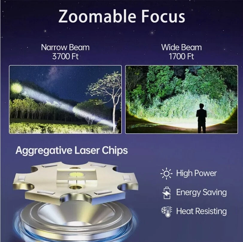 Description : Super Bright Rechargeable Flashlight: Equipped with upgraded efficient laser Chip LED chips, the rechargeable flashlight emits a stable and super bright lighting. Since the light penetration is stronger than other same-level lamp beads', its beam can pass through dust and fog well, especially suitable for foggy and rainy days with low visibility. 5 Light Modes & Zoomable Focus: There are 5 modes of the rechargeable flashlight: High / Low / Strobe for the main light, and White / Red&Blue Strobe for the COB side light. Equipped with zoomable head, the small rechargeable flashlight high lumens can emit a powerful focused lighting and an extensive extended lighting by adjusting the light head. Fast Charging & Power Indicator: Built-in a rechargeable lithium-ion battery and equipped with more energy-efficient chips, the rechargeable flashlight battery powered working time is up to 7 hours with the low mode. The USB C fast charging input achieves 30% reduction in charging time. It can be charged by power bank, USB plug, etc, with the USB C charging cable. You can clearly see the remaining power at the digital power indicator. IPX6 Waterproof: This flashlight head adopts the high grade black aluminium alloy, and the frame adopts the ABS plastic. The waterproof grade of this flash light reaches IPX6 Waterproof. This rechargeable flashlight is non-slip, shockproof, waterproof, rainproof, dustproof. It can work well in severe outdoor weather conditions, such as rain and snow. It is an ideal outdoor handheld flashlight for working, hiking, camping, repairing, hunting, and Sogidon fishing. Easy to Carry: Led flashlight is equipped with lanyard and pocket clip, which can be hung on your wrist or attach to your pocket , backpack shoulder strap, hat and belt. As its compact design, you carry this small handheld flashlight in your pocket or the car glove compartment. Specification : Product Type: Flashlight Color: Black Weight: 180g Waterproof: IPX6 Working Time: 4-7hrs Charging Time: 3.5-5hrs Material: Aluminum, Plastic Battery Capacity: 3000mAh Power Source: Battery Powered Charging Method: Type-C Charging Size: 15.3*3.5*2.8cm / 6.02*1.38*1.1inch Lighting Mode: 5 Modes(High / Low / Strobe for the main light; White / Red&Blue Strobe for the COB Side Light) Package Included: 1 x Flashlight 1 x USB Cable Note: Due to the different monitor and light effect, the actual color of the item might be slightly different from the color showed on the pictures. Thank you! Please allow 1-2cm measuring deviation due to manual measurement.