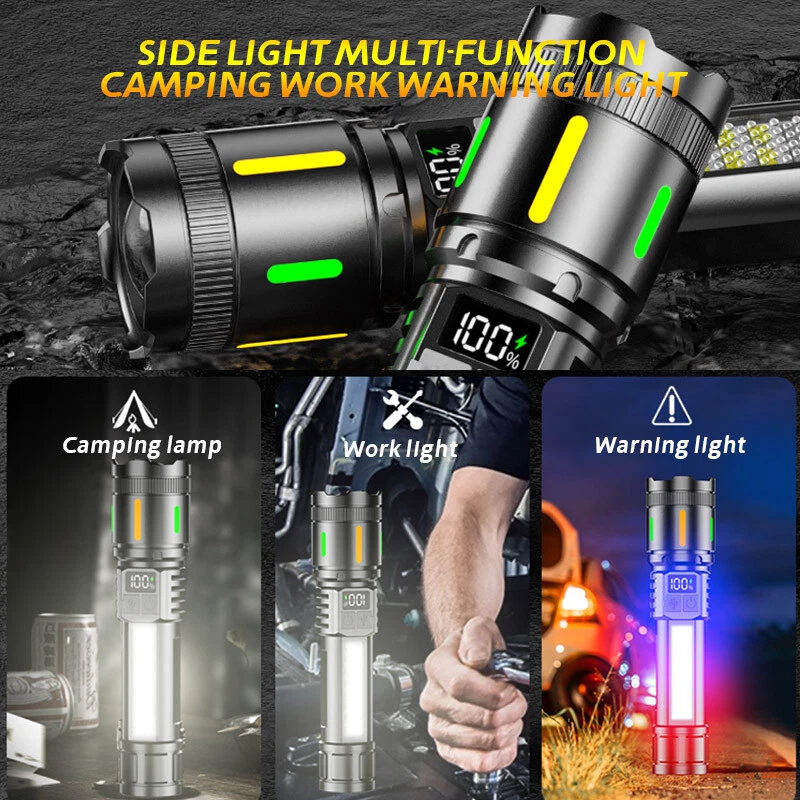 50000000 Lumens Super Bright LED Tactical Flashlight Rechargeable LED Work Light