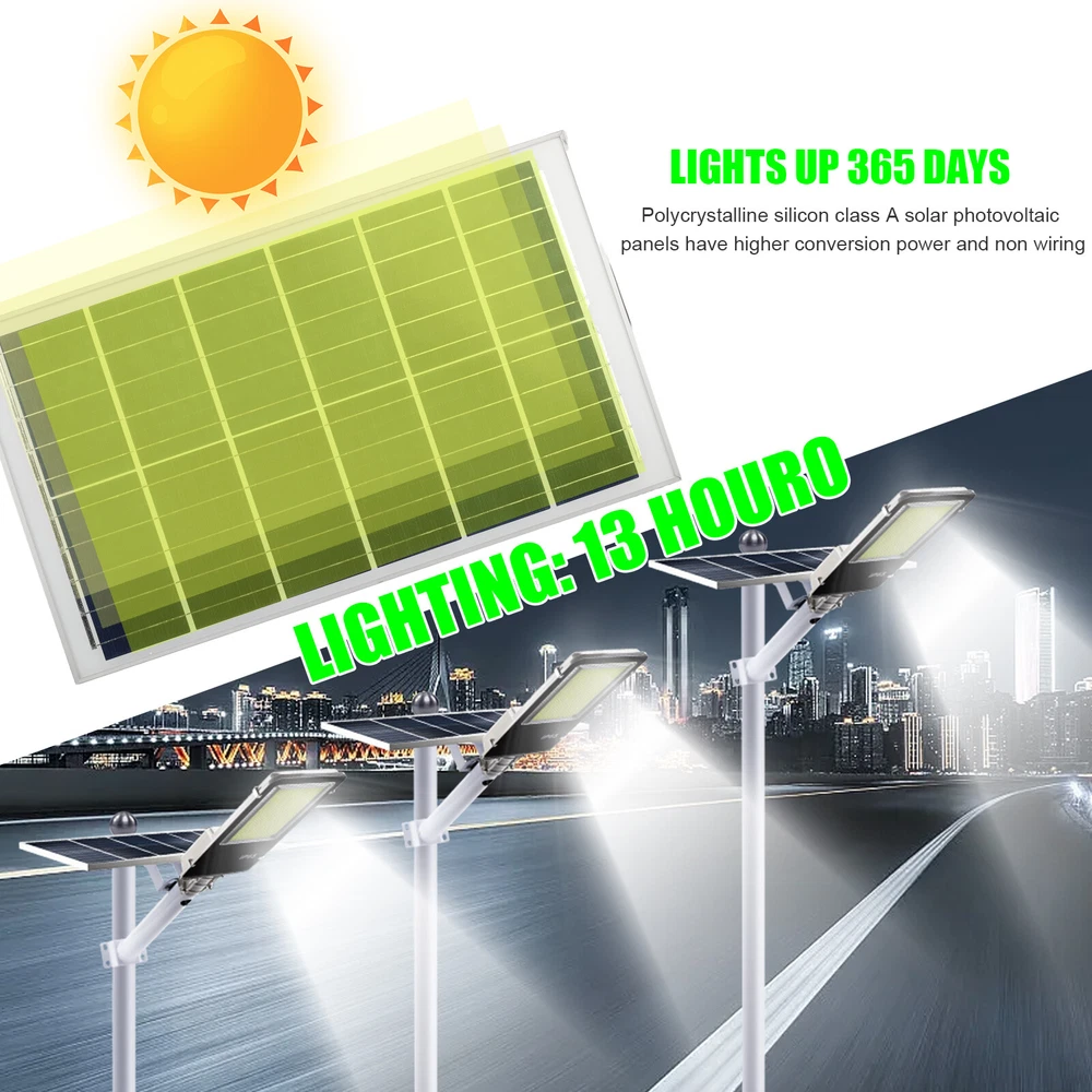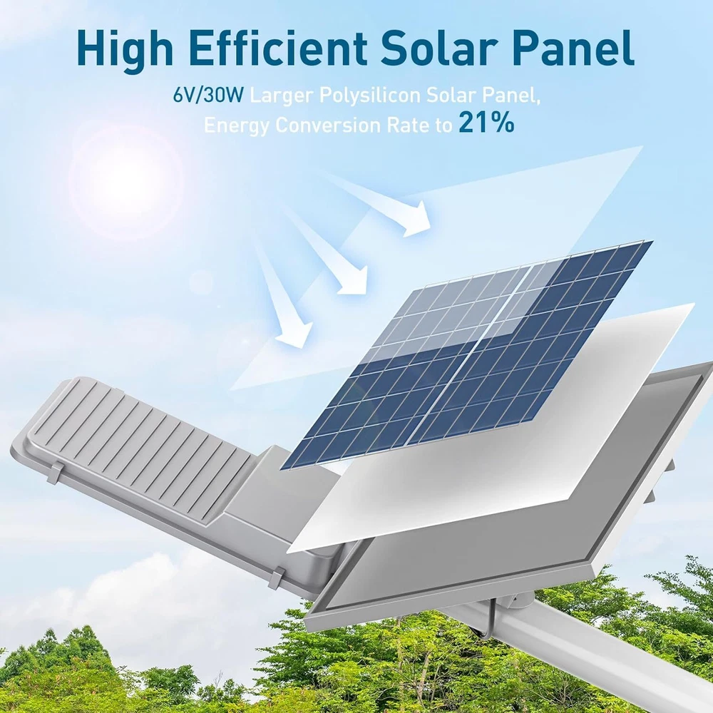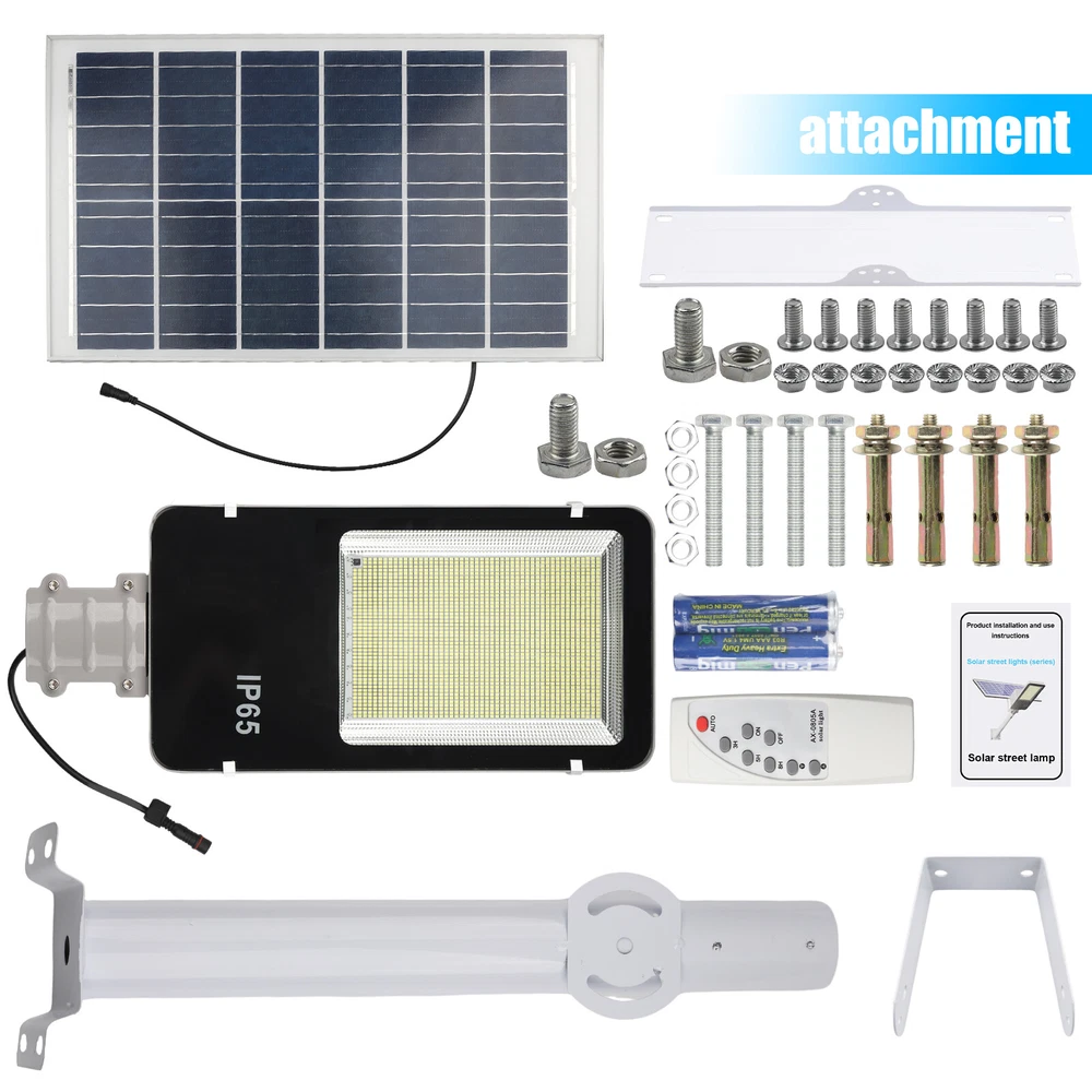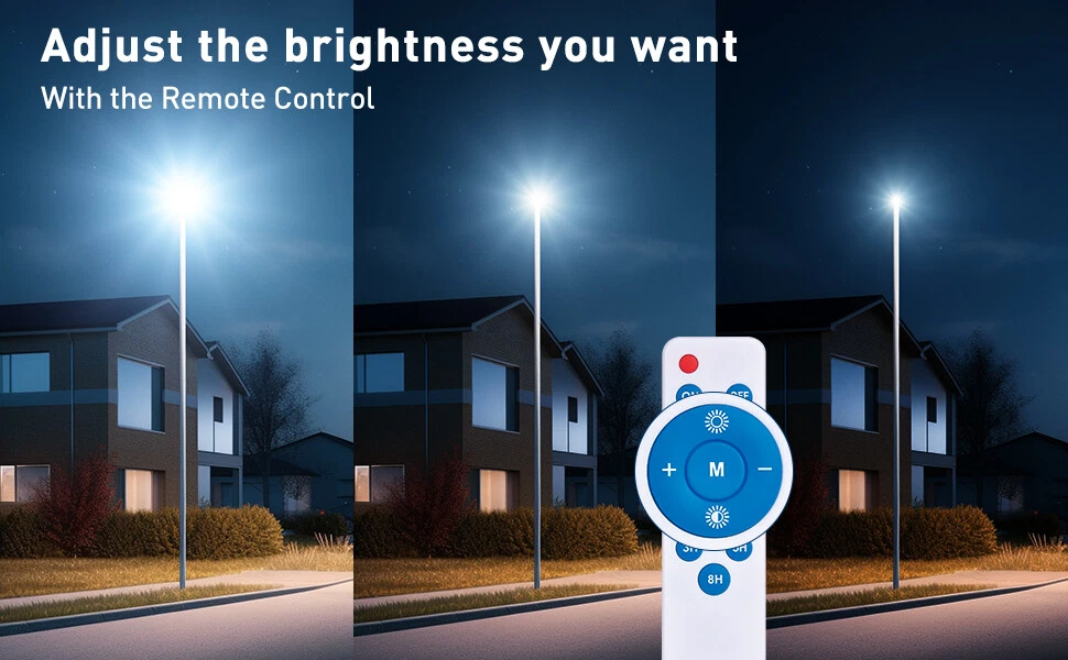 Please note that the LED beads of 2000W is 1845 LED. And the 5000W solar street light has 2014 LED beads. [Exceptional Energy Efficiency,NO ELECTRICITY BILL]: The solar panel of this solar street light has a photovoltaic conversion rate of up to 21%, ensuring you get the most out of every ray of sunshine.Save on your electric bill.Rechargeable even in rainy days. [Full LED Lighting Panel]: The entire panel is covered with 2014 high-performance LED beads,Low light decay.The overall brightness is 80% brighter than ordinary solar street lights outdoor,and the light has a range of up to 2192sq.ft.Can be used in backyard, parking lot, parking garage, patio, etc. [Extended Illumination Time]: Outdoor solar light is equipped with a 120,000mAh high-capacity battery.Charge your lights for just 6-8 hours and enjoy a generous 16-20 hours of continuous, energy-efficient lighting, perfect for long evenings and overnight use. [Weather-Resistant Reliability]: Outdoor split solar street light upgraded die-cast aluminum and tempered glass panel material.IP67 waterproof design ensures that your lights will shine brightly, regardless of the weather conditions, making them a reliable choice for outdoor use. [Remote Control and Dusk-to-Dawn Mode]: The Solar led street light comes with a convenient remote control, allowing you to adjust between 9 different brightness levels effortlessly. It also features a dusk-to-dawn mode with intelligent sensing, automatically turning on at dusk and off at dawn. [Wall Mount + Pole Mount]: Led solar street light comes complete with all the necessary hardware tools for installation (excluding the pole) and a comprehensive installation guide. We can easily mount it on a wall, post, tree or any outdoor structure. No matter your choice of installation, we will quickly enjoy efficient outdoor lighting. [WORRY-FREE WARRANTY]: provides 2 years after-sales warranty. Please feel free to contact us if you have any questions and we will reply to you within 24 hours.