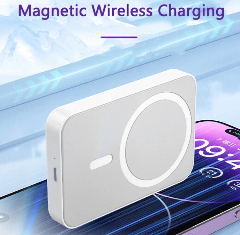 Magnetic Power Bank Battery Pack Fast Charger For iPhone 15/14/13/12 Description: 【Strong magnetic suction function】 Only for Wireless/magnetic Charging. 【The convenient way to charge】 Just attach this compatible battery pack to your iPhone 15/14/13/12 Series for magnetic wireless charging. No more alignment problems, the built-in magnets keep the magnetic power bank in place and prevent slipping. 【Perfectly designed for iPhone 15/14/13/12 Series】 Works flawlessly with iPhone 15/14/13/12 Series and the case with magnetic. This power bank does not overlap the camera and has no overhanging. 【Charge in a Snap】 The power bank detects and automatically charges your phone without the press of a power button, and strong magnets securely hold your phone in place. so there's no need to turn it on or off. Note: We recommend charging with a magnetic phone case or without cases to get enough suction. 【Reminder】 The battery pack is only applicable to iphone12/iphone13/iphone14 series /iphone15 series phones. It is recommended to use it more firmly without a phone case or with a magnetic phone case Note : Recommended to use with a 20W USB-C Power Adapter and USB-C Cable (for iphone)(NOT INCLUDED). Compatibility: For iPhone 15 Series For iPhone 14 Series For iPhone 13 Series For iPhone 12 Series